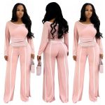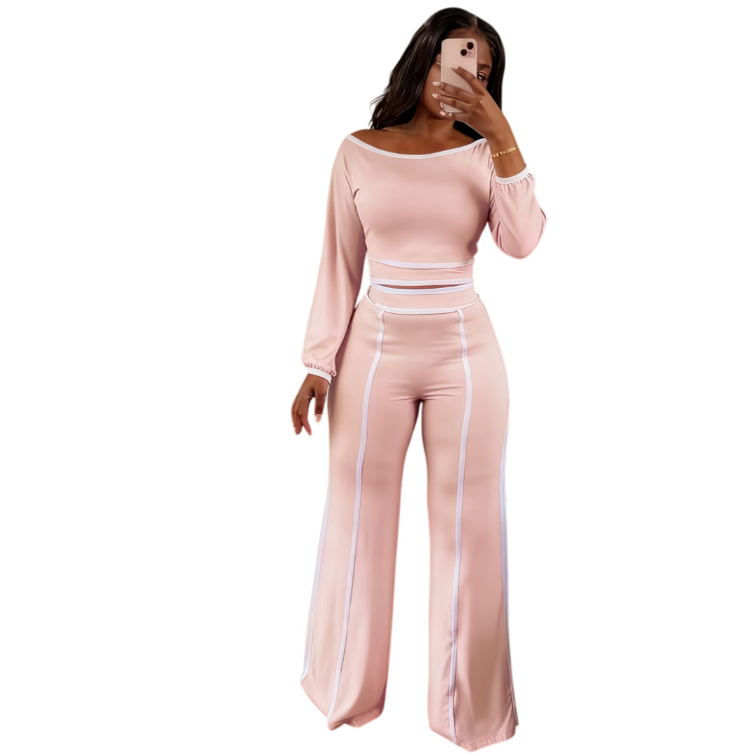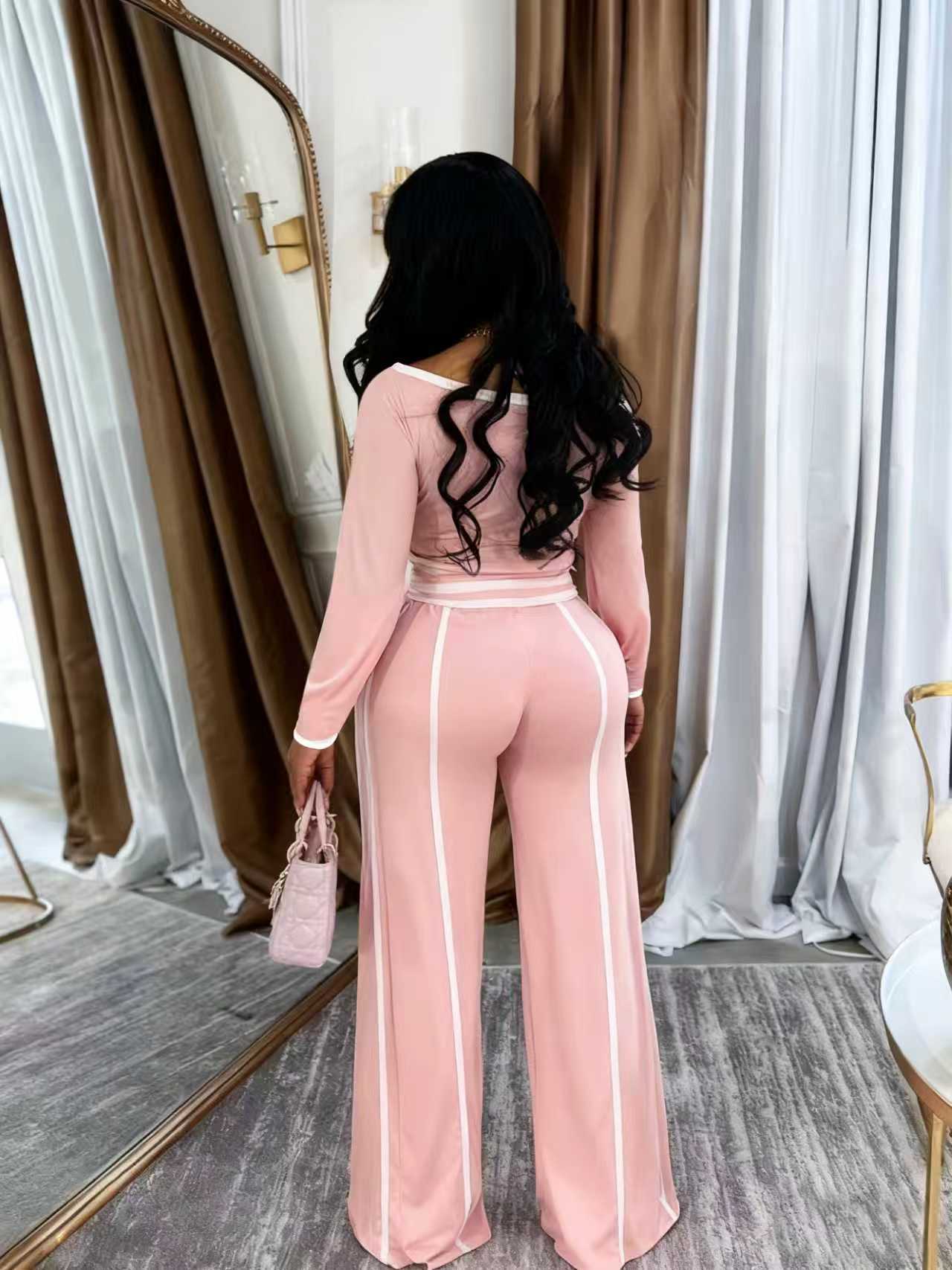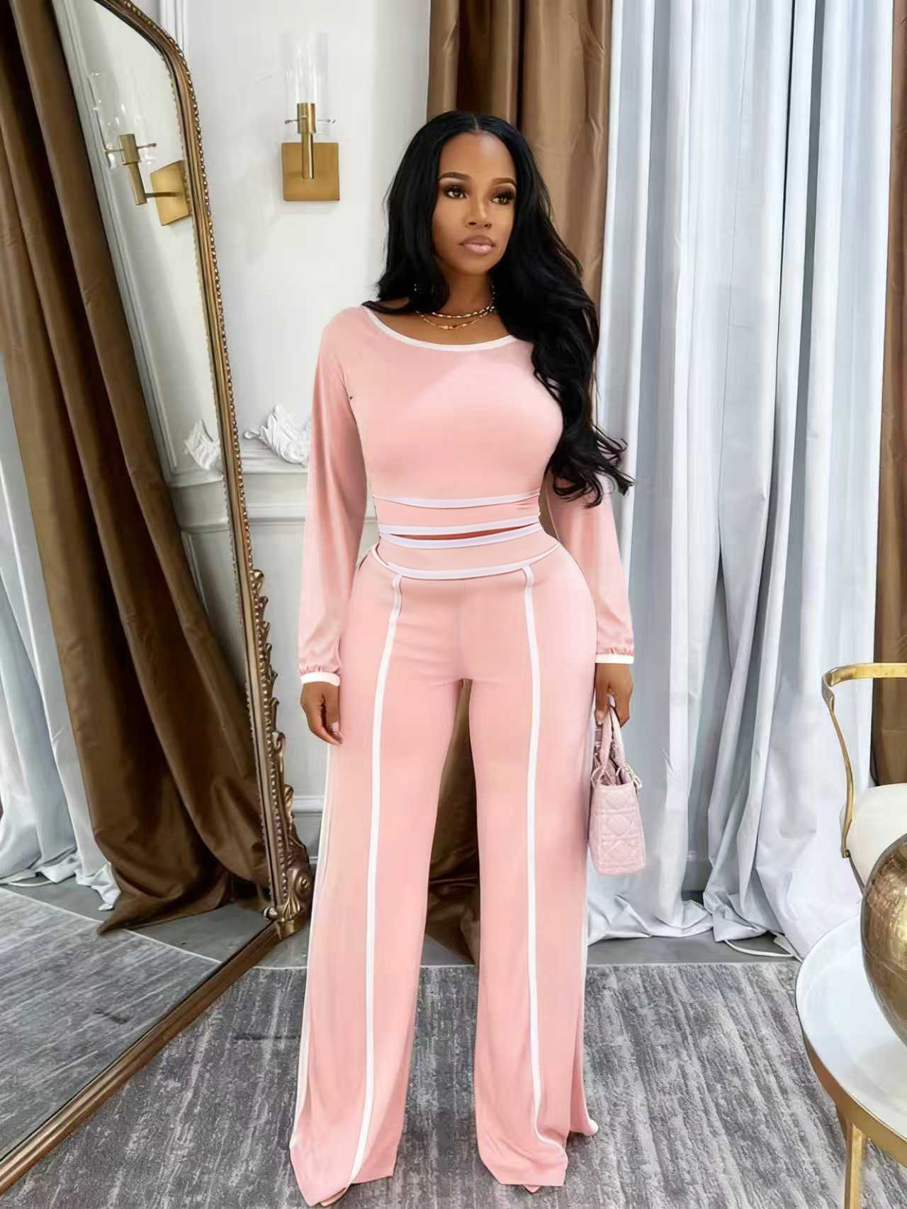Stylish Wide-leg Solid-color Patchwork Two-piece Set