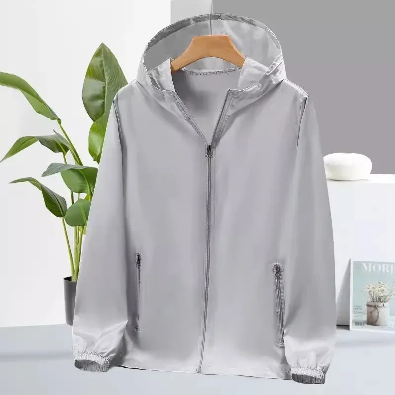 Summer Men’s Ice Silk Sun Protection Jacket Lightweight Breathable Loose Fit Large Size Heat Sensation Thin Outerwear Coat