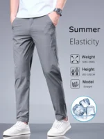 Summer New Business Ice Silk Pants Straight Elastic Waist Black Gray Trousers Breathable Simple Male Clothing Casual Suit Pants
