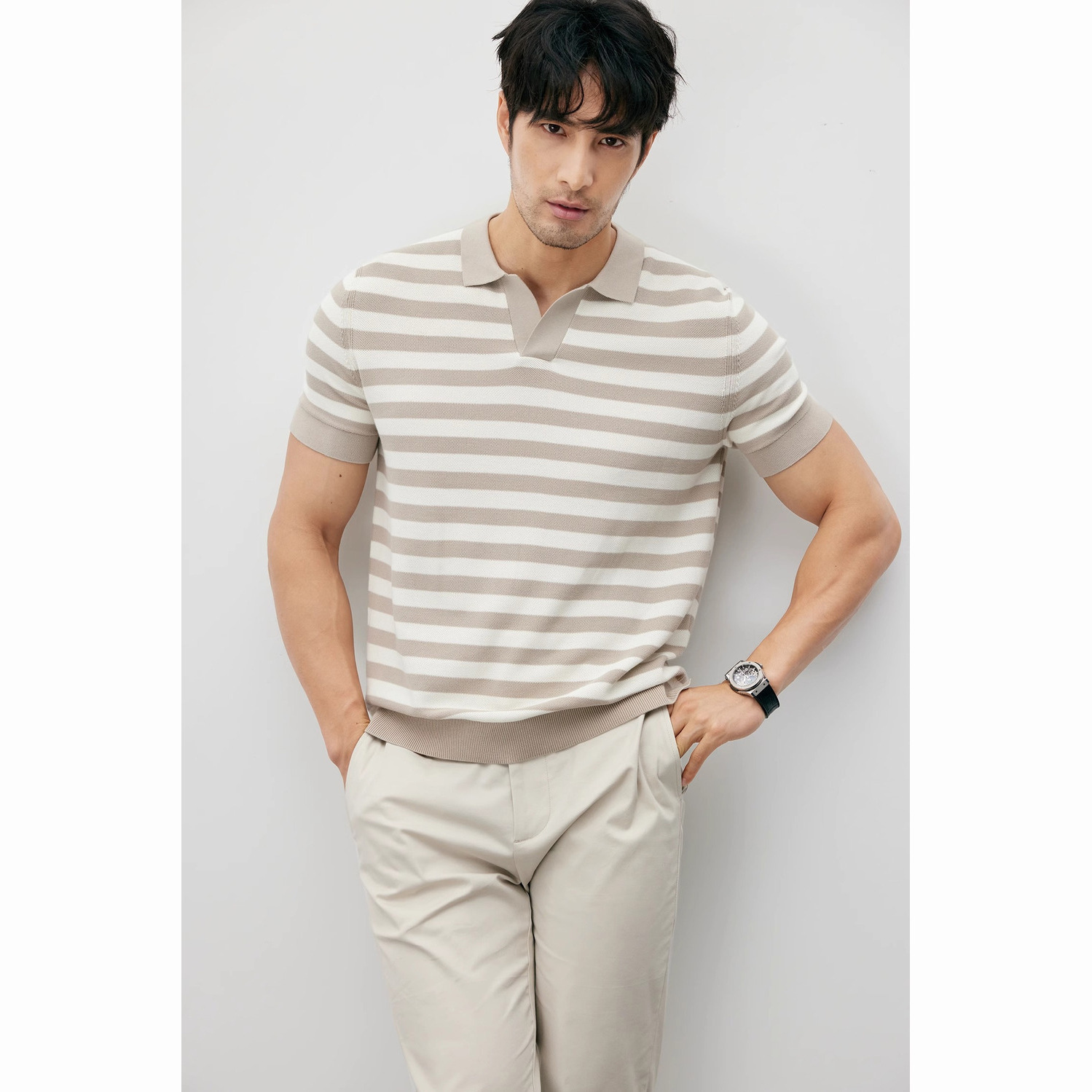 Summer New Ice Silk Short Sleeve Knitted Men’s V-neck Lapel Slim