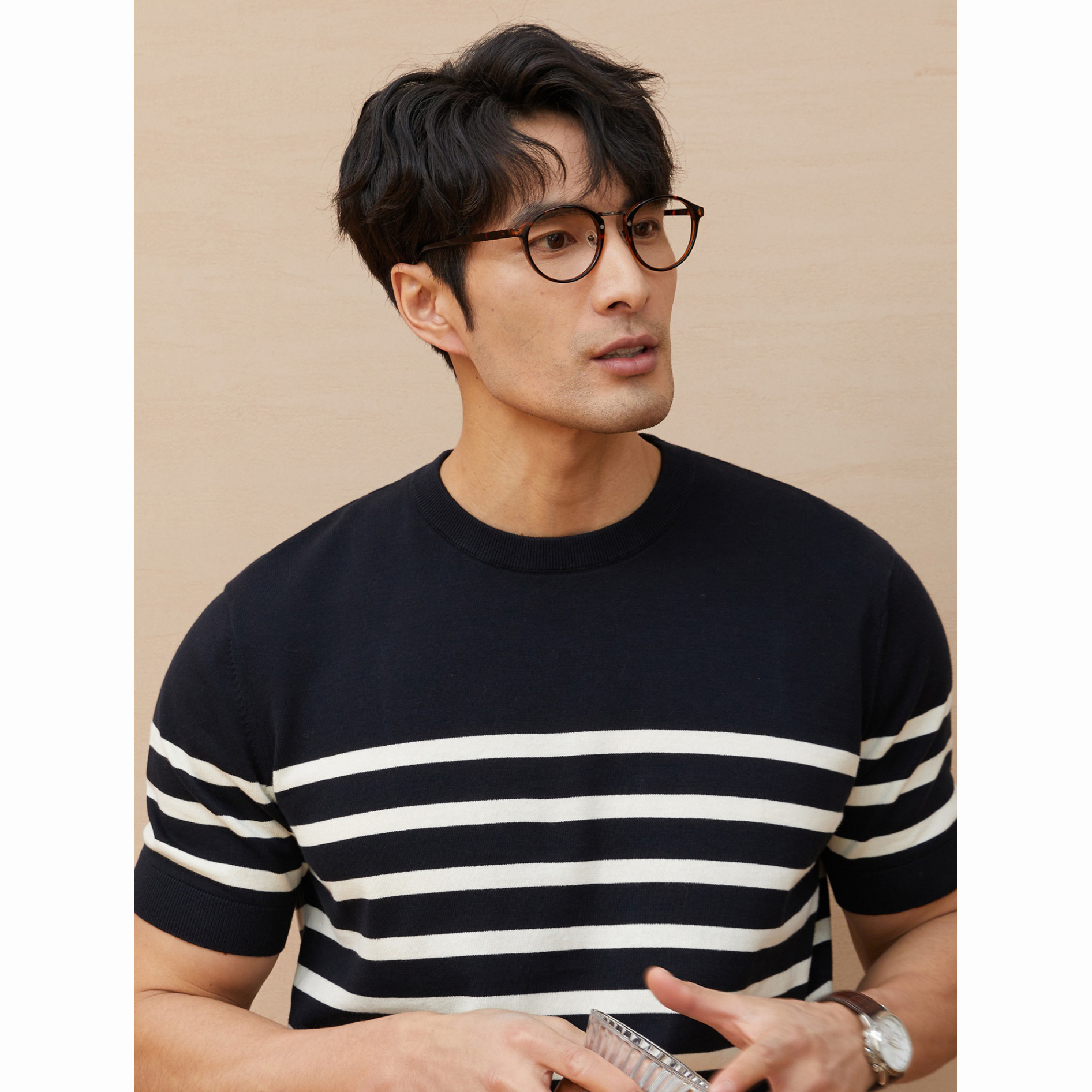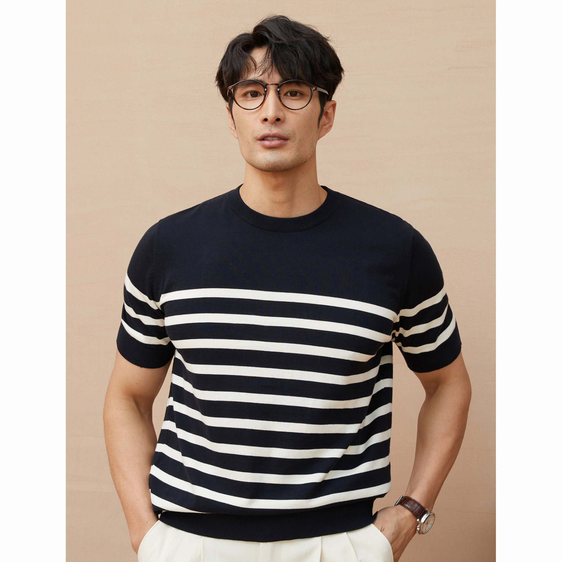 Summer New Short-sleeved Knitted Sweater Men’s Striped Light Luxury Business Casual