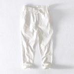 Summer Slim-fit Cropped Pants In Lightweight Cotton And Linen