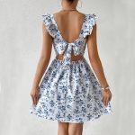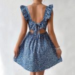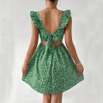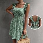 Summer Square-neck Ruffled Sleeveless Dress With Bow-tie Backless Design Fashion Casual Holiday Beach Dresses For Womens Clothing