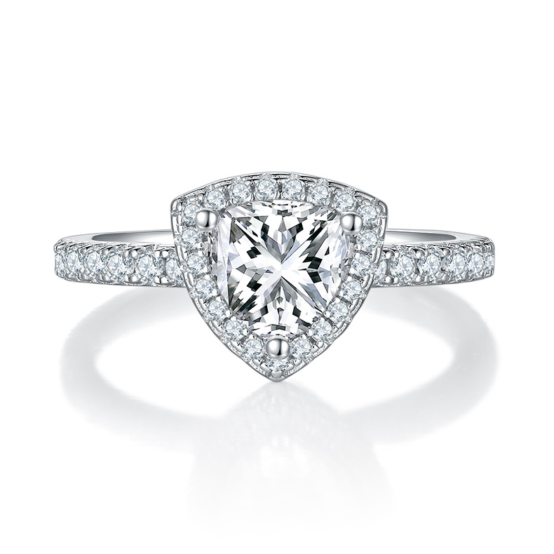 Triangular Moissanite Set With Top-quality Moissanite Luxury And Fashionable Light Luxury Jewelry Silver Ring S925 Silver Electroplated With Platinum