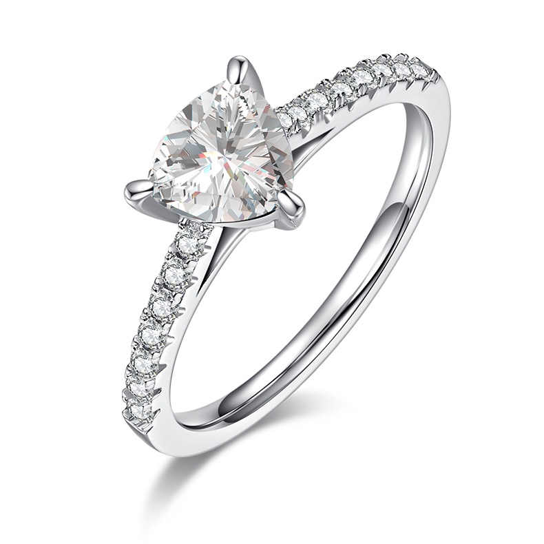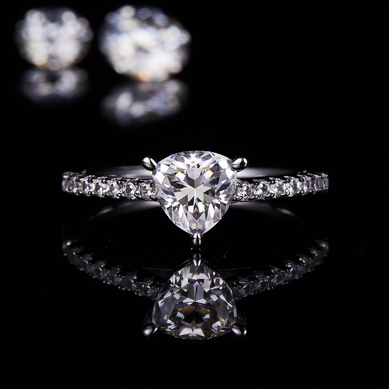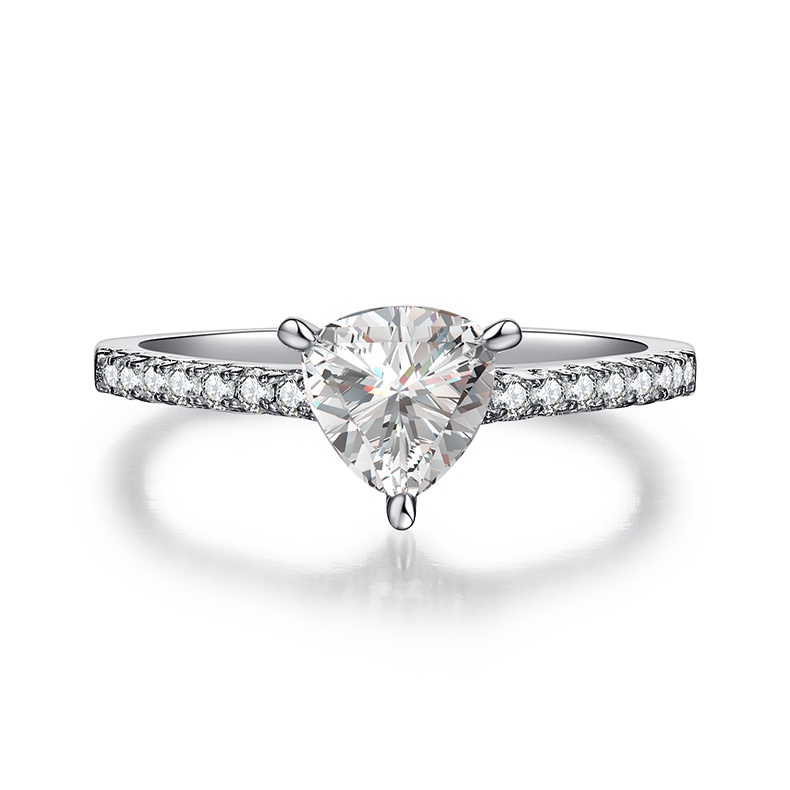 Triangular Moissanite Set With Top-quality Moissanite Luxury And Fashionable Light Luxury Jewelry Silver Ring S925 Silver Electroplated With Platinum