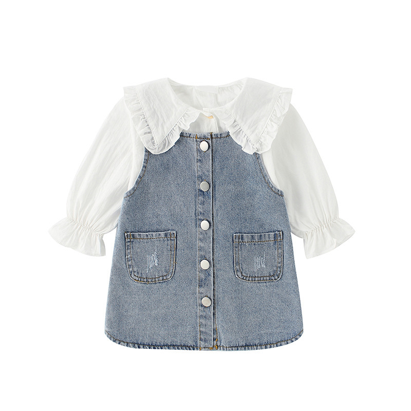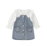 Two-piece Baby Girl Big Lapel Shirt Denim Strap Skirt