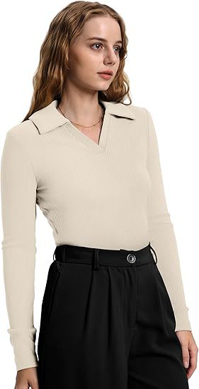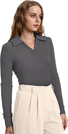 V-neck Rib Knit Sweater Slim Fit Fallwinter Top
