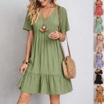 V-neck Short Sleeve Dress Summer Fashion Casual Loose Ruffled Dresses Beach Clothing Women