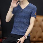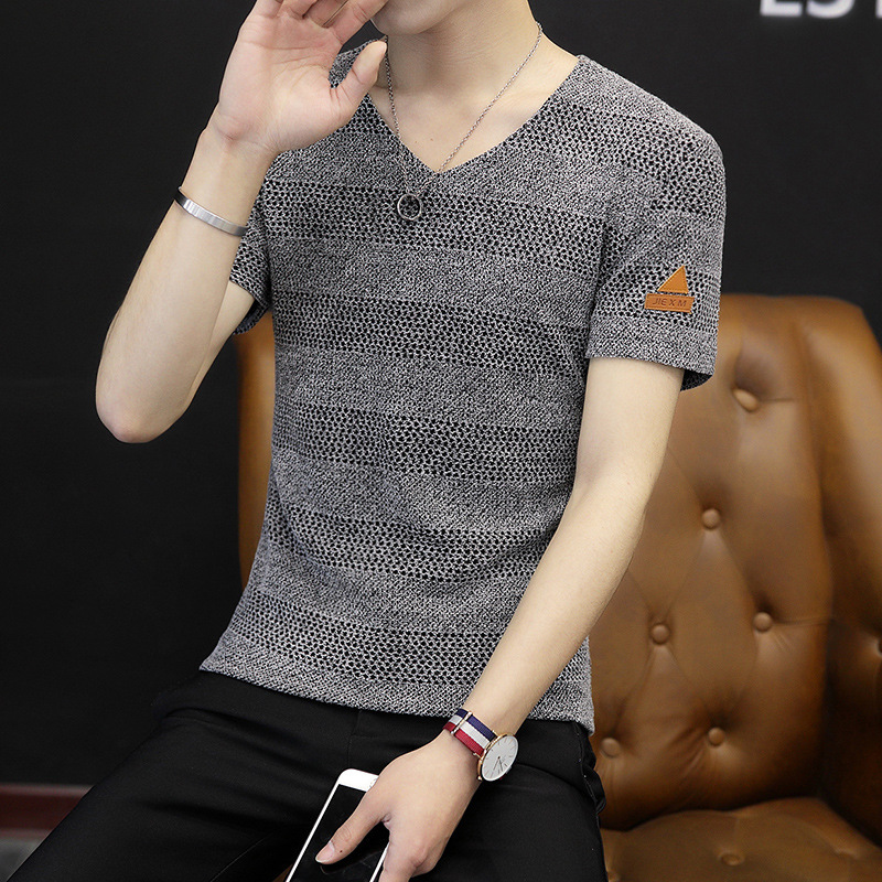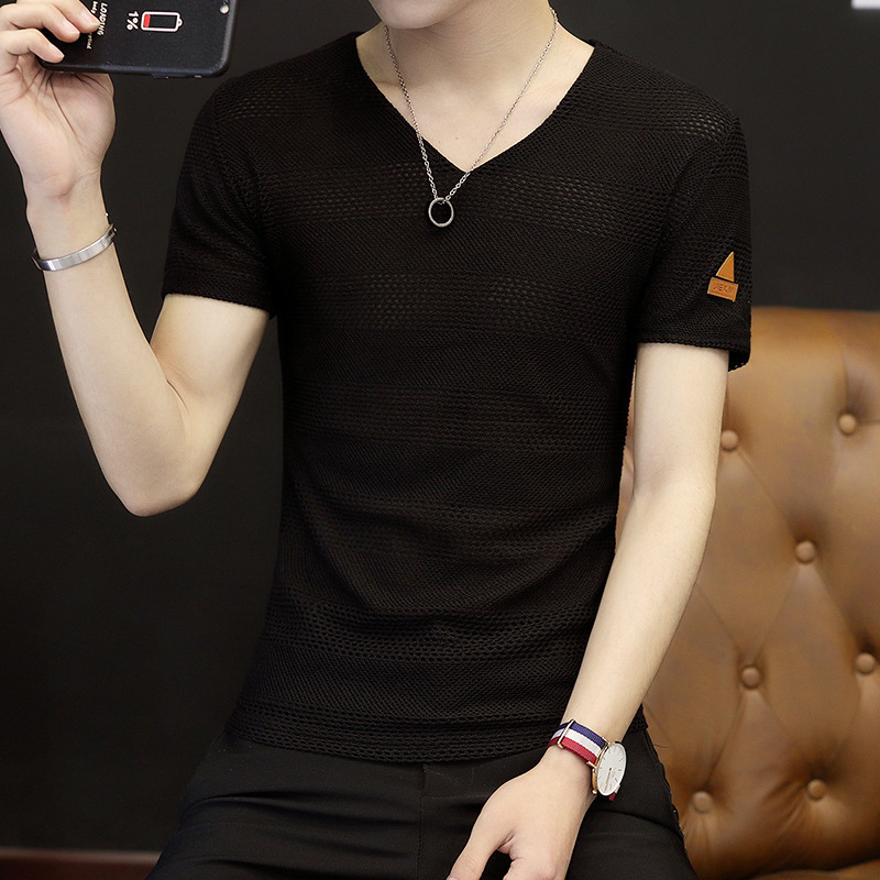 V-neck Sleeve Label Short Sleeved T-shirt With Mesh Bottom