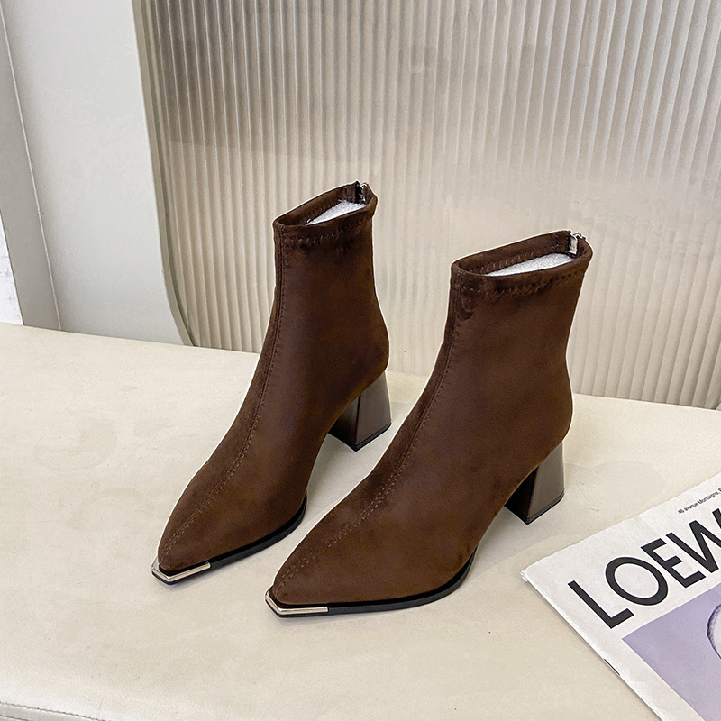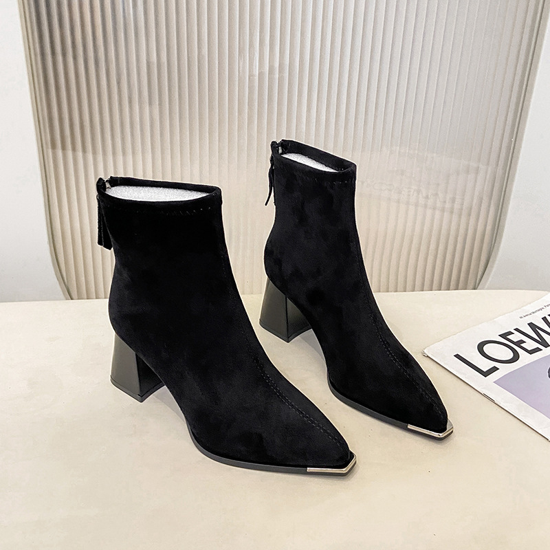 Vintage Chunky-heeled Suede Pointed-toe Ankle Bootsversatile