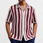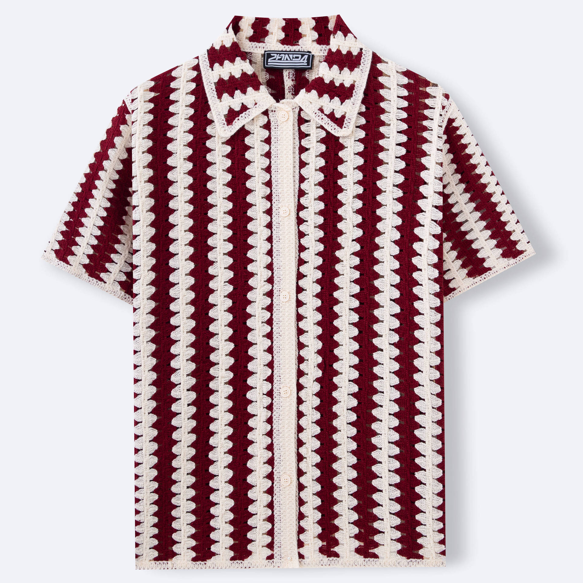 Vintage Stripe Knitwear Crocheted Short-sleeved Hollow Shirt
