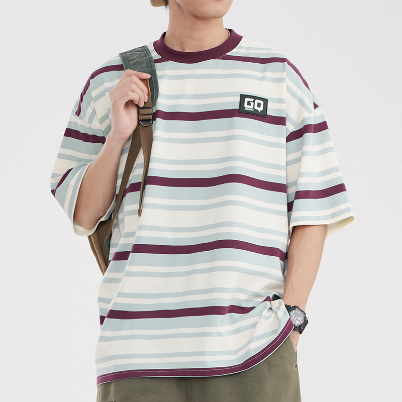 Vintage Stripe Niche Couple Loose Half-sleeve Top