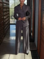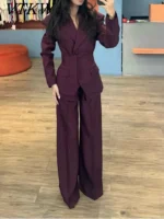 VTKW Women’s Designer 2-Piece Set Single Breasted Blazer High Waist Wide Leg Pants Spring Summer Casual Suit Vacation 2025
