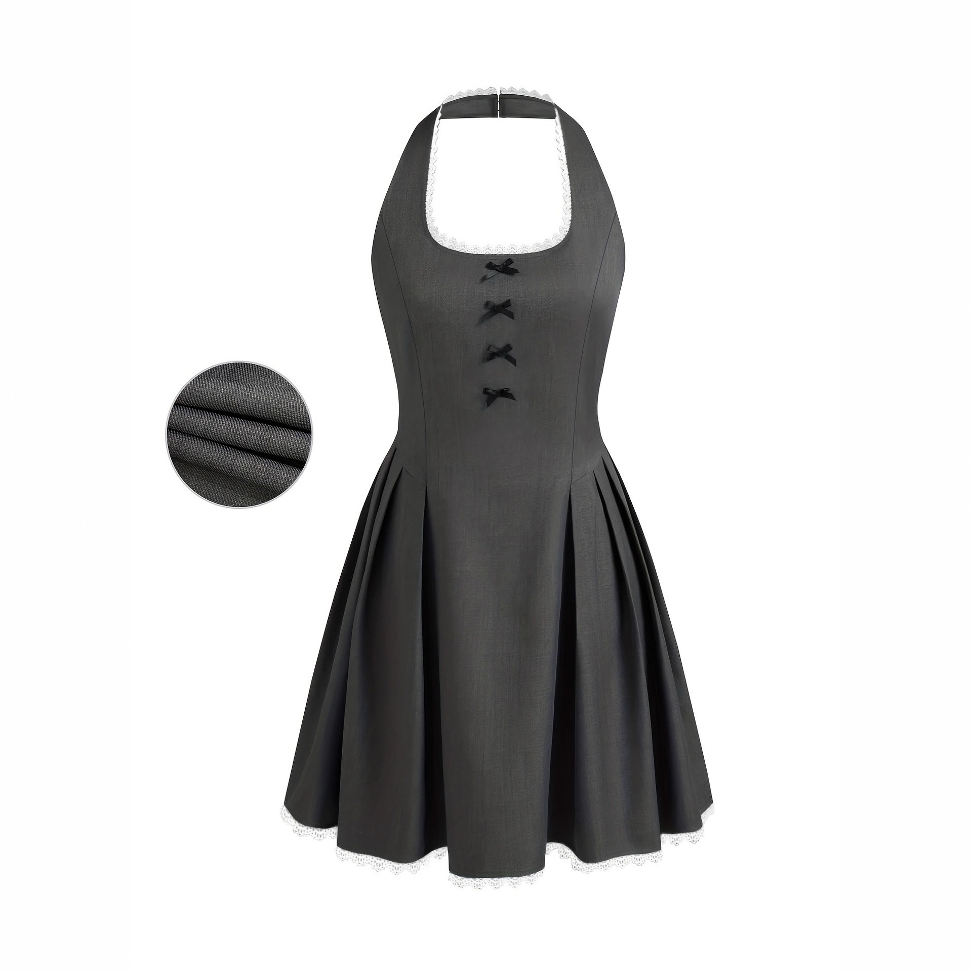 Waist-Cinched Slimming Butterfly-Knot Halter Dress