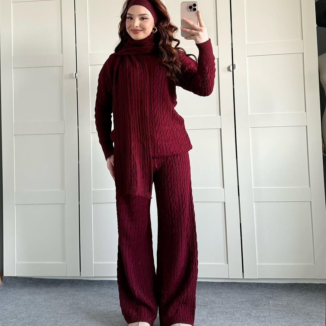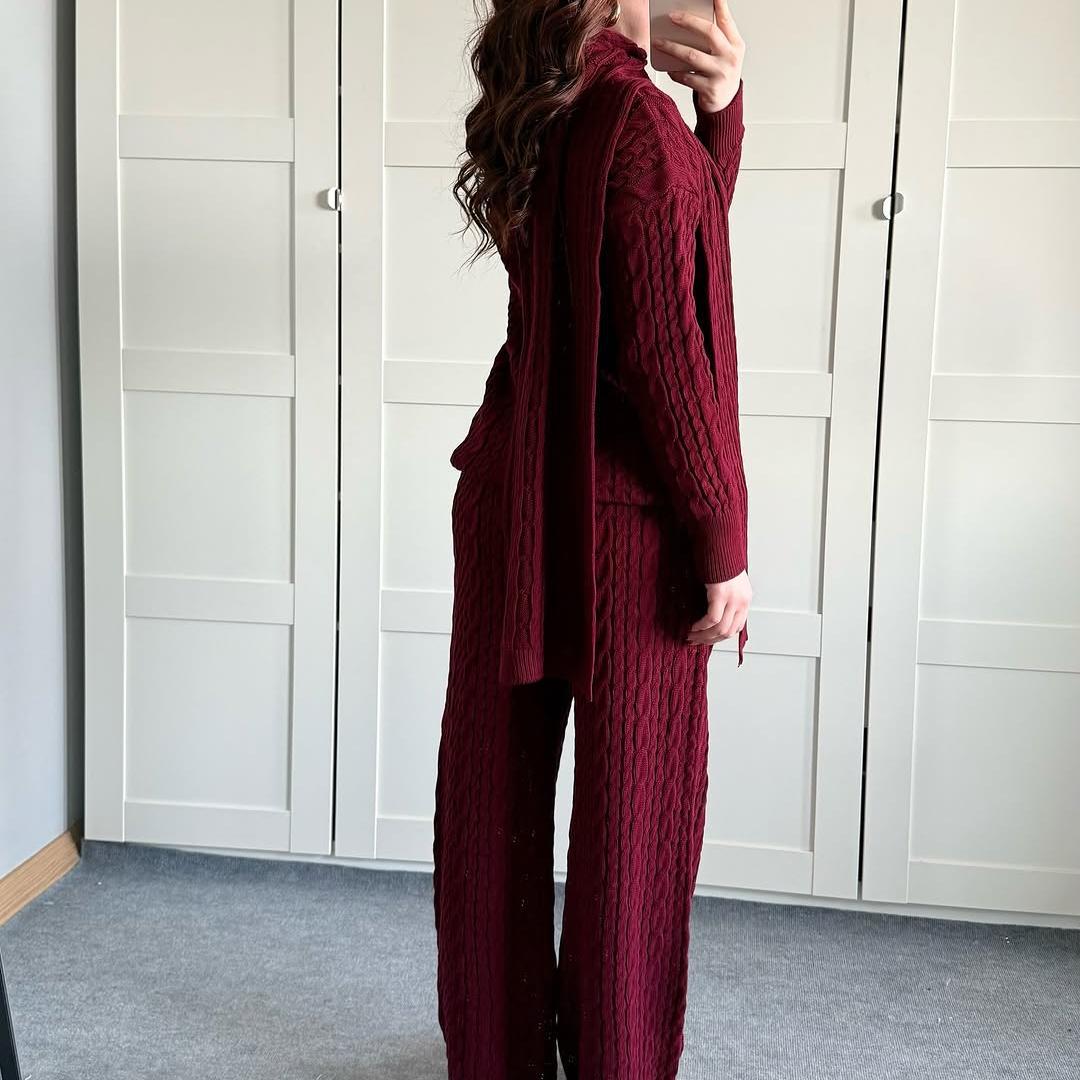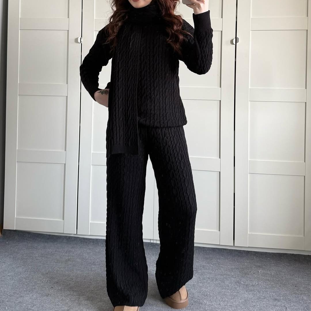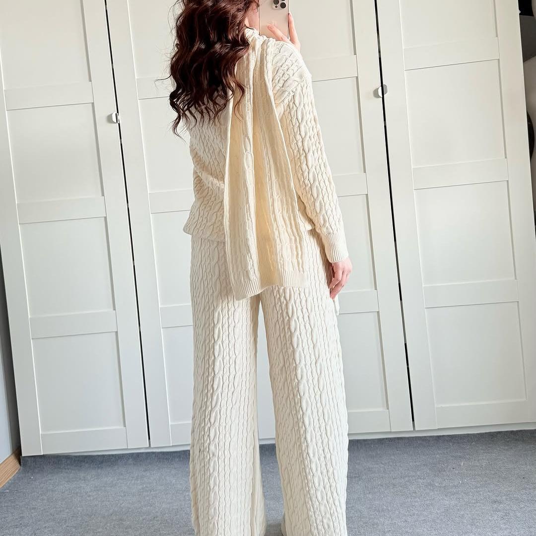 Warm Casual Neck Warmer Top And Pants Sweater Set