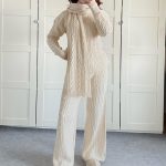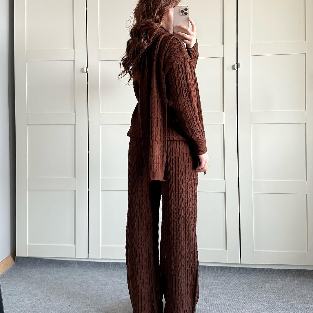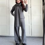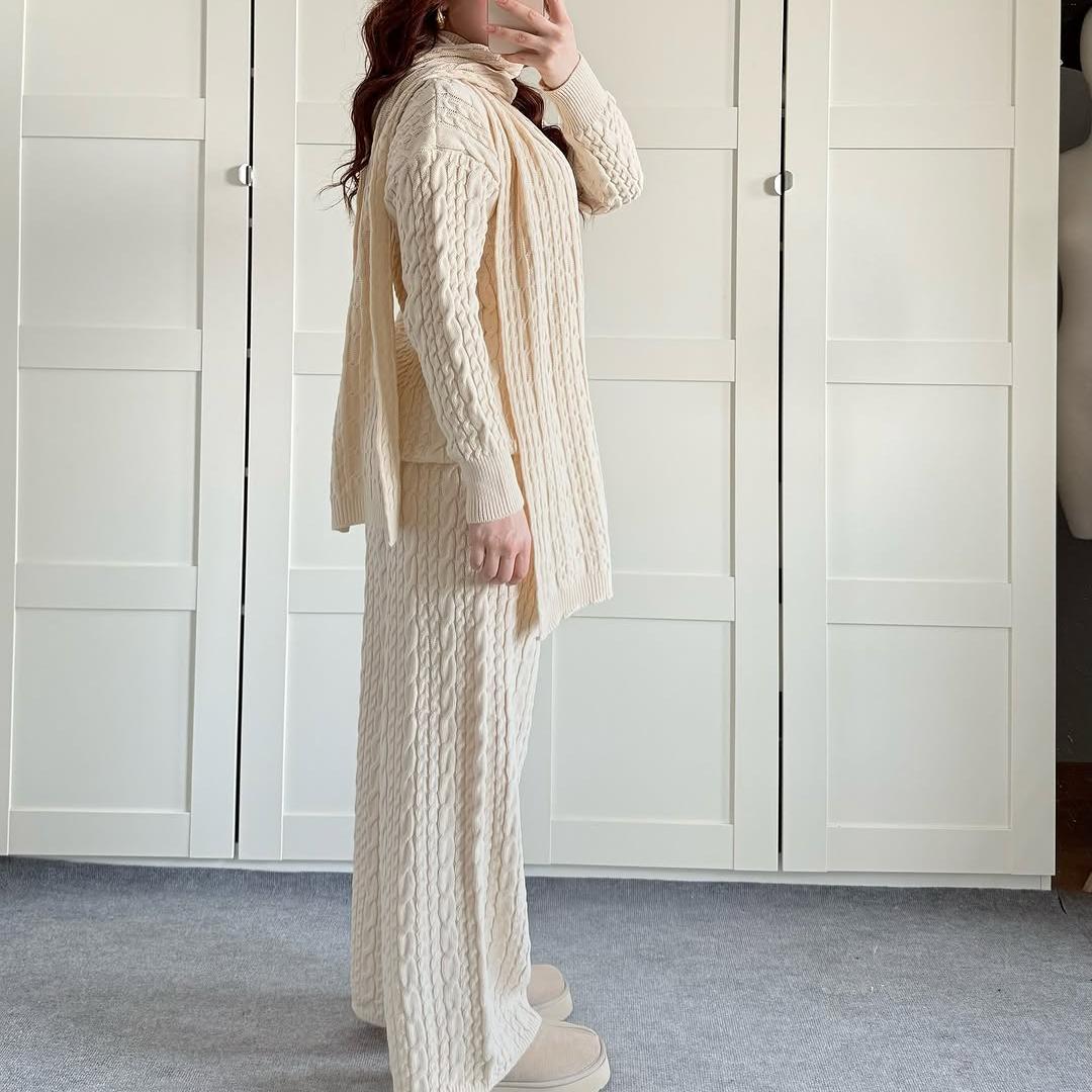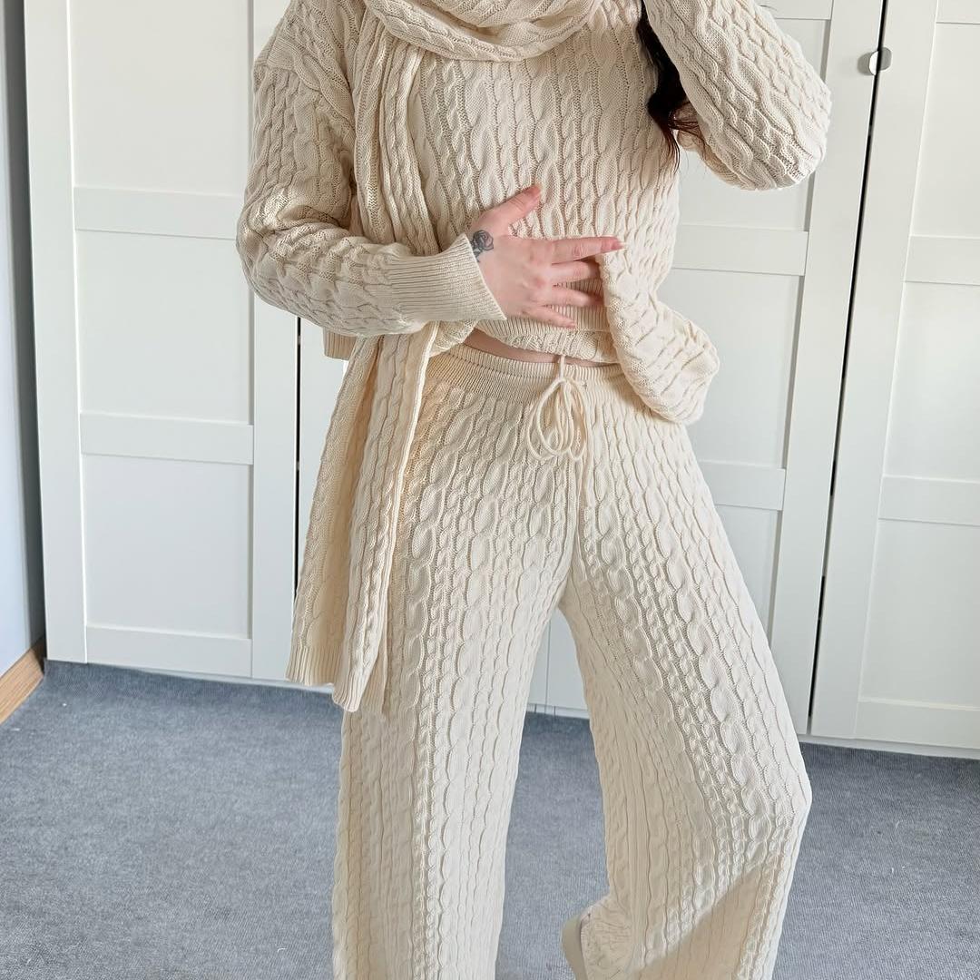 Warm Casual Neck Warmer Top And Pants Sweater Set