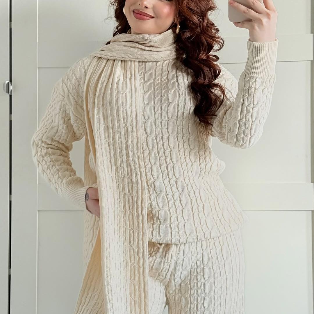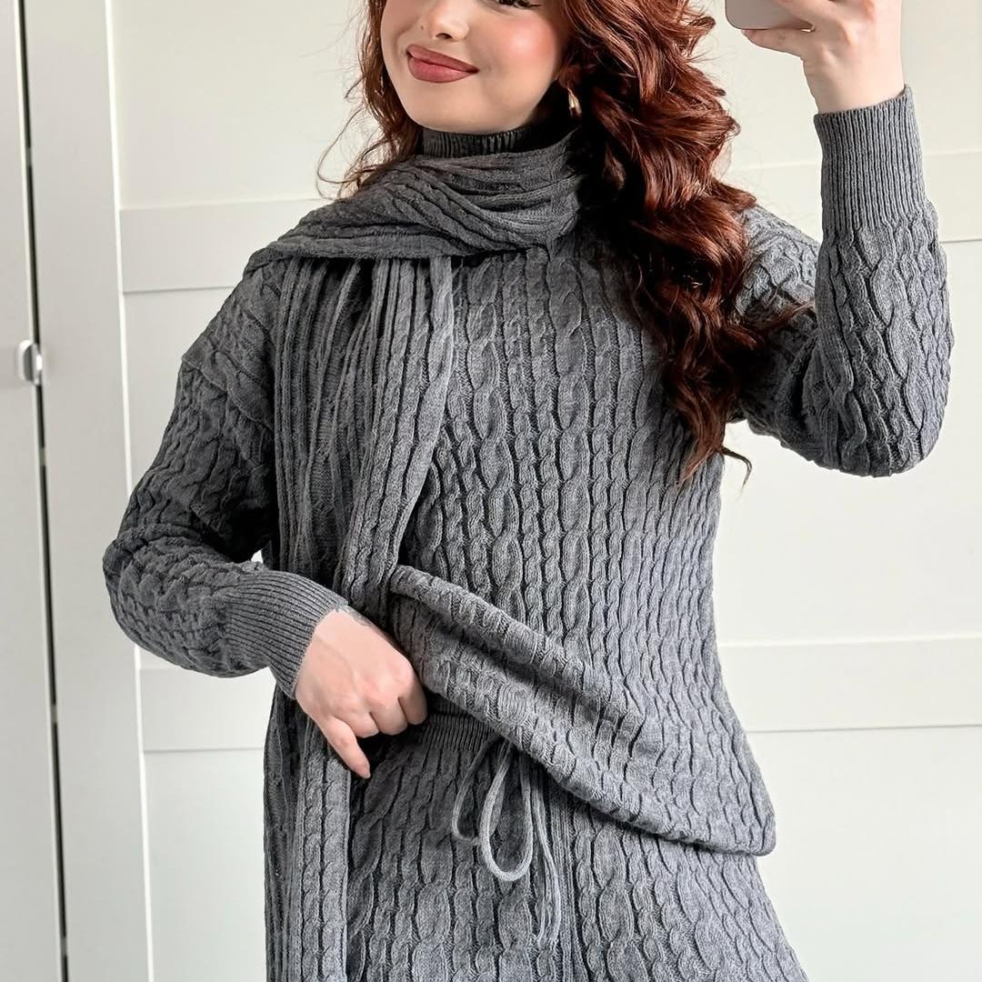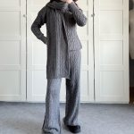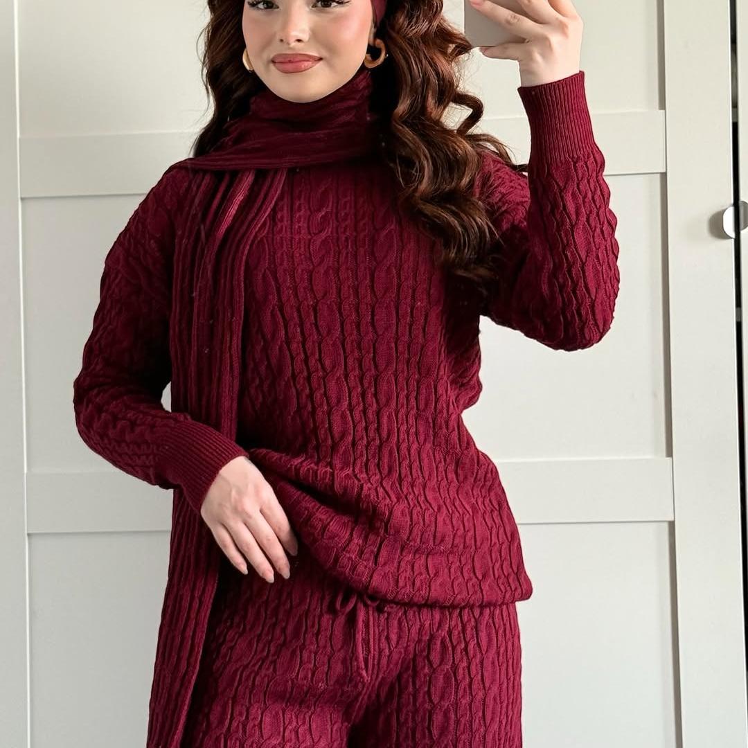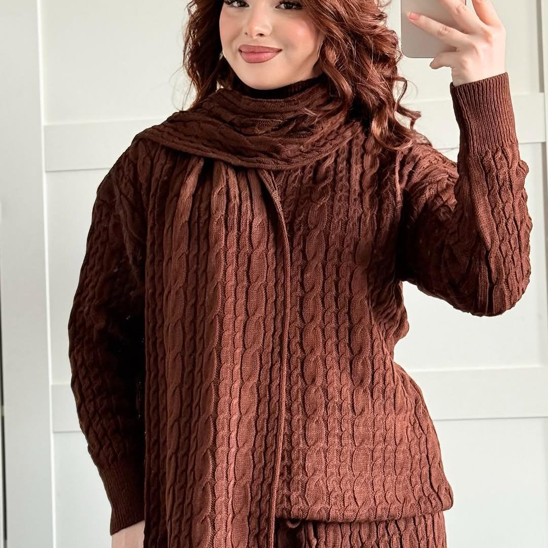 Warm Casual Neck Warmer Top And Pants Sweater Set