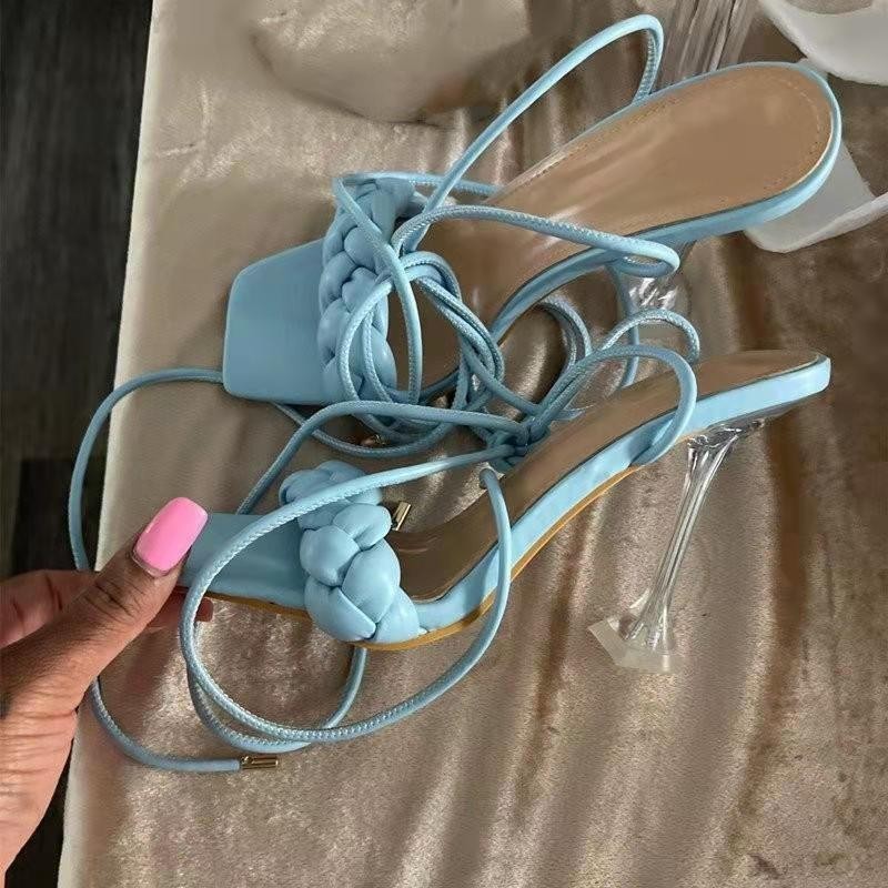 Weave Strappy Sandals Square Toe Stiletto High Heel Shoes Party Pumps