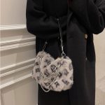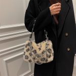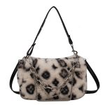 Winter Plush Bags Chain Shoulder Bag Women Flowers Print Handbags