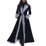 Winter Women’s Retro Black Ethnic Style Faux Fur Trim Suede Long Coat