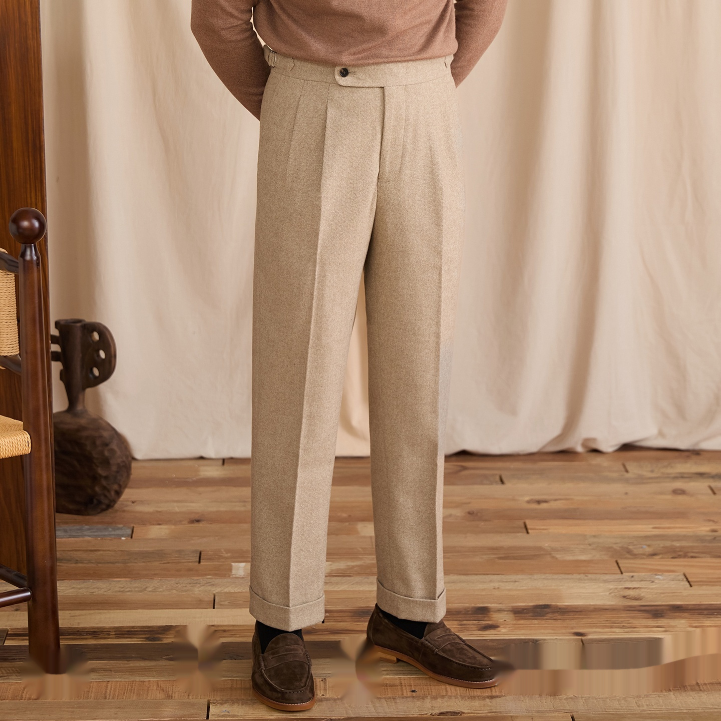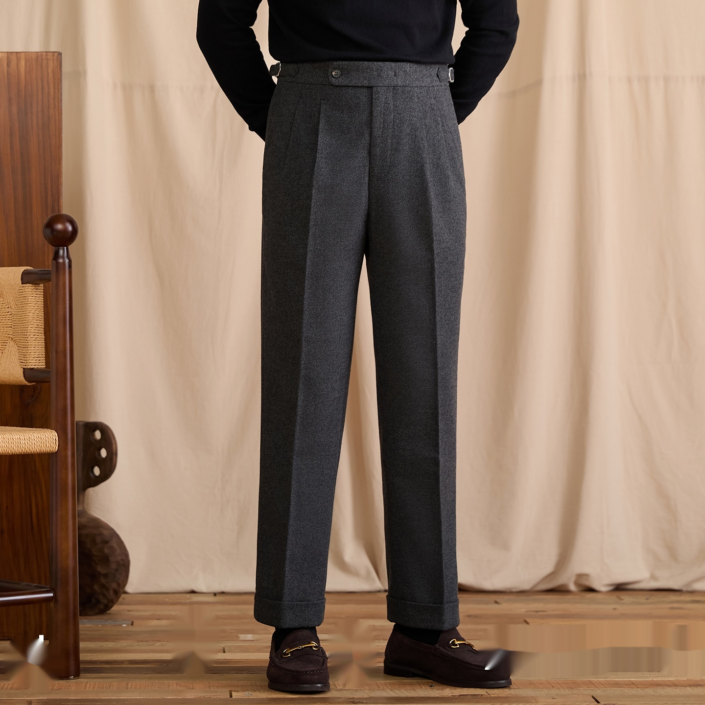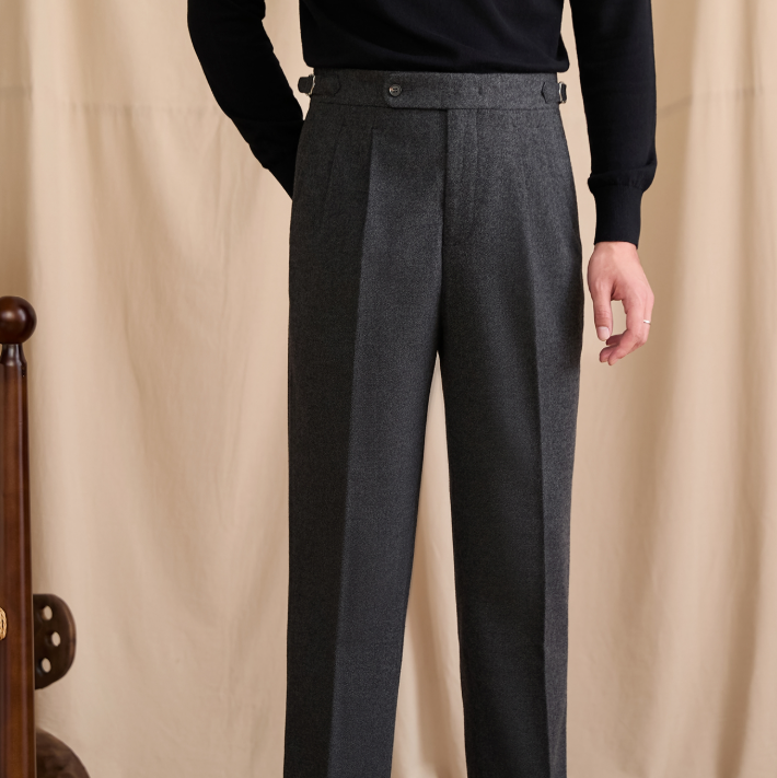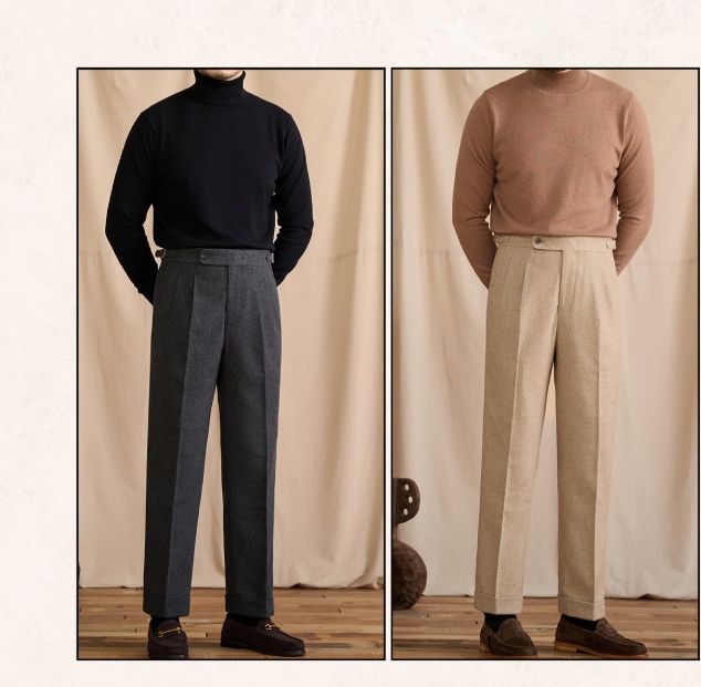 Winter Wool-blend Naples-style High-waist Straight-leg Dress Pants