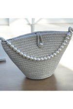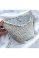 Women Beige Pearl Design Classic Shoulder Bag Elegant Daily Handbag