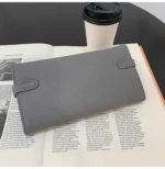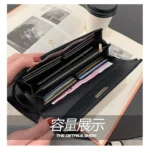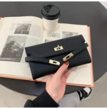 Women Black Leather Turn Lock Leather Bifold Long Wallet
