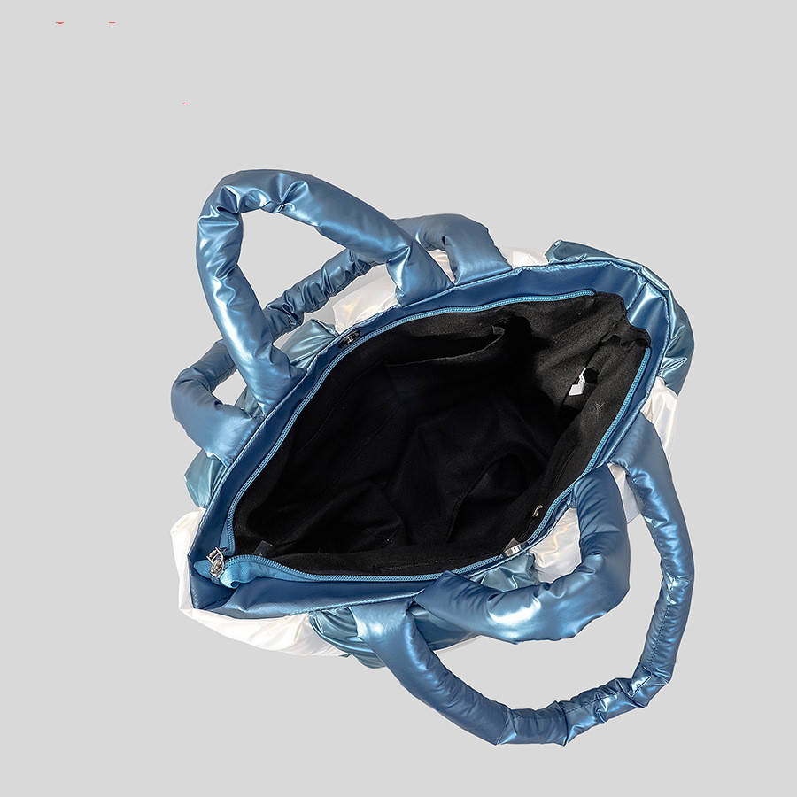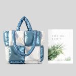 Women Handbags Winter Color Matching Down Cotton-padded Coat Tote Bag Soft Plaid Shoulder Bags