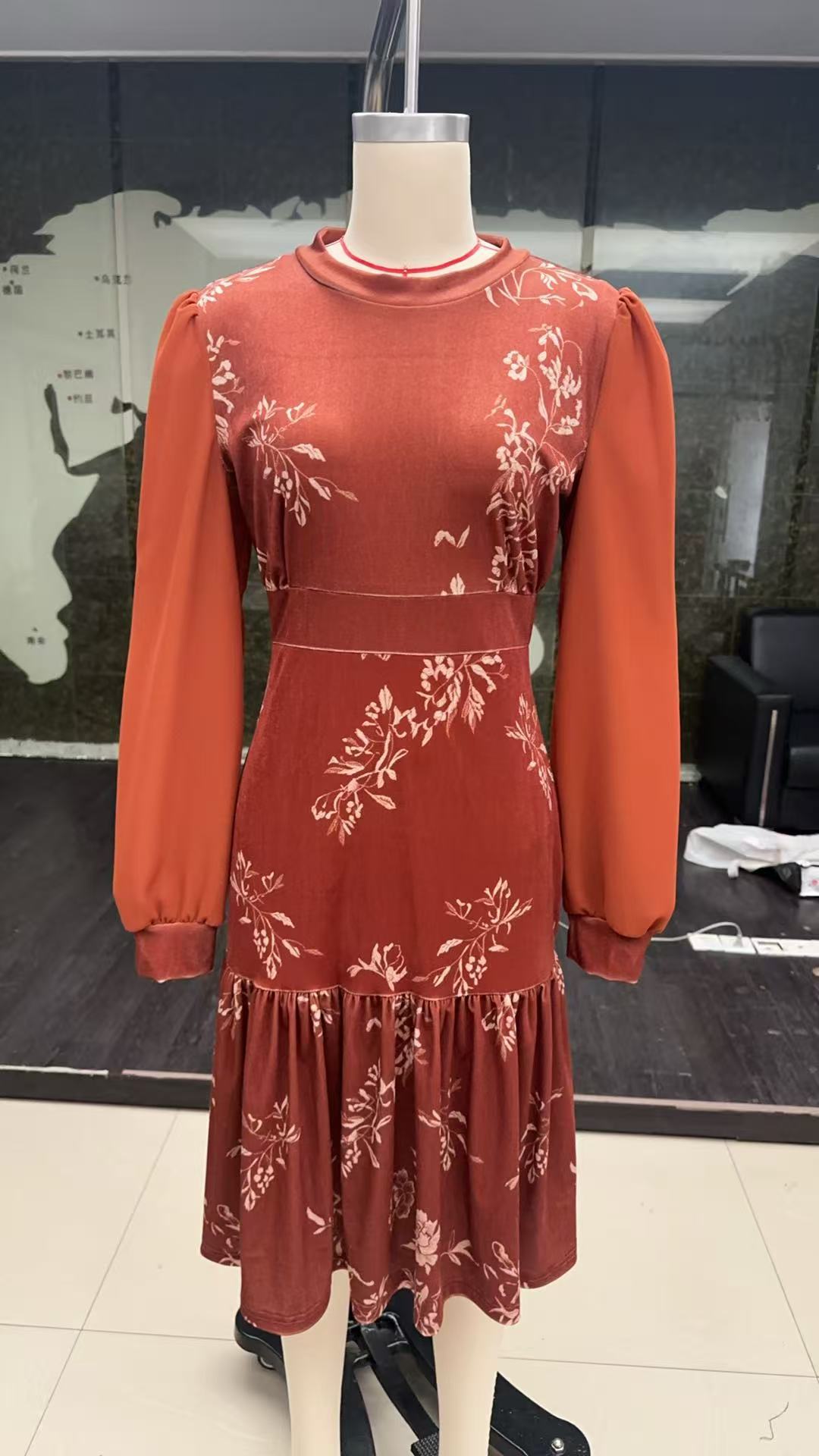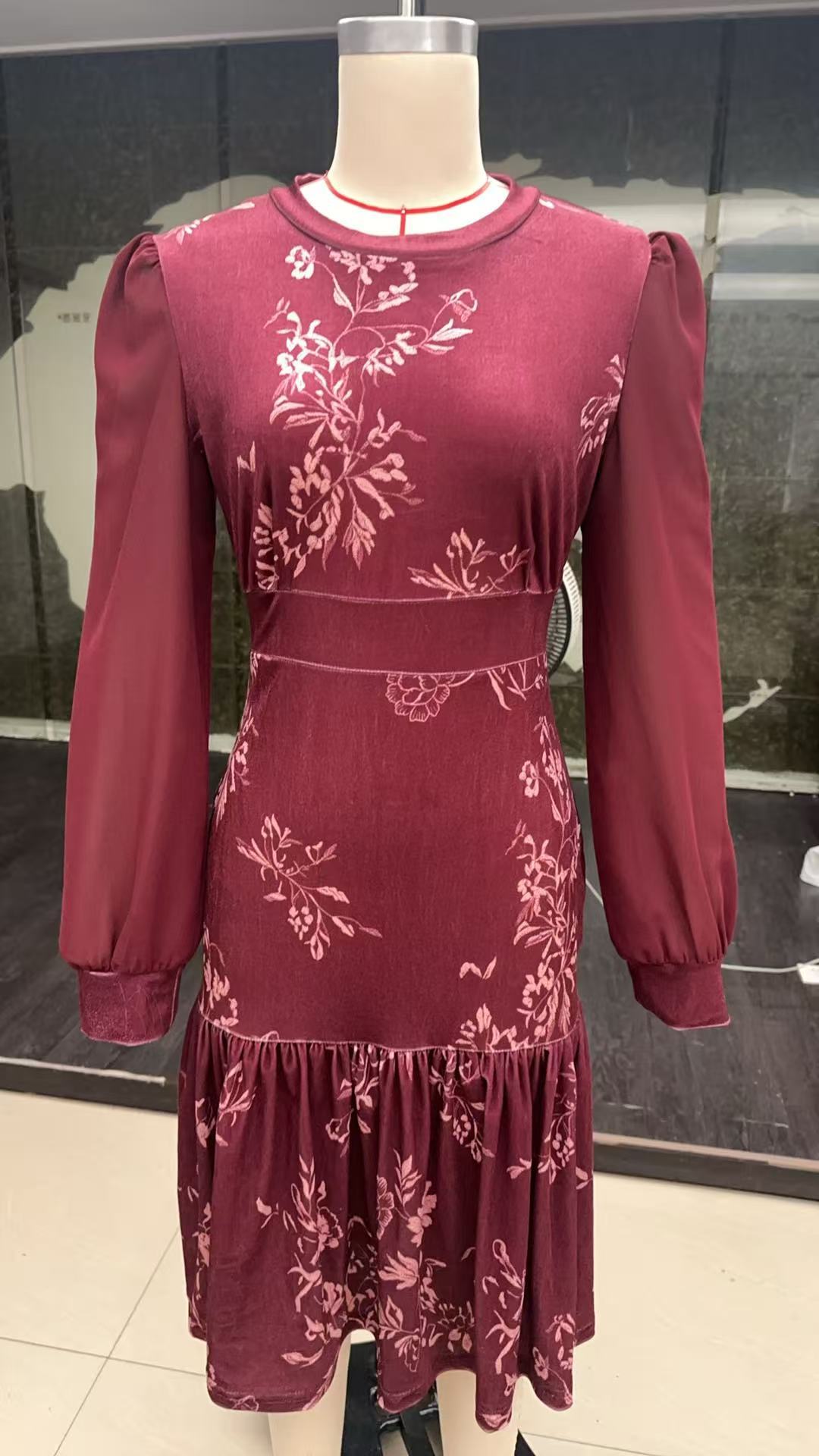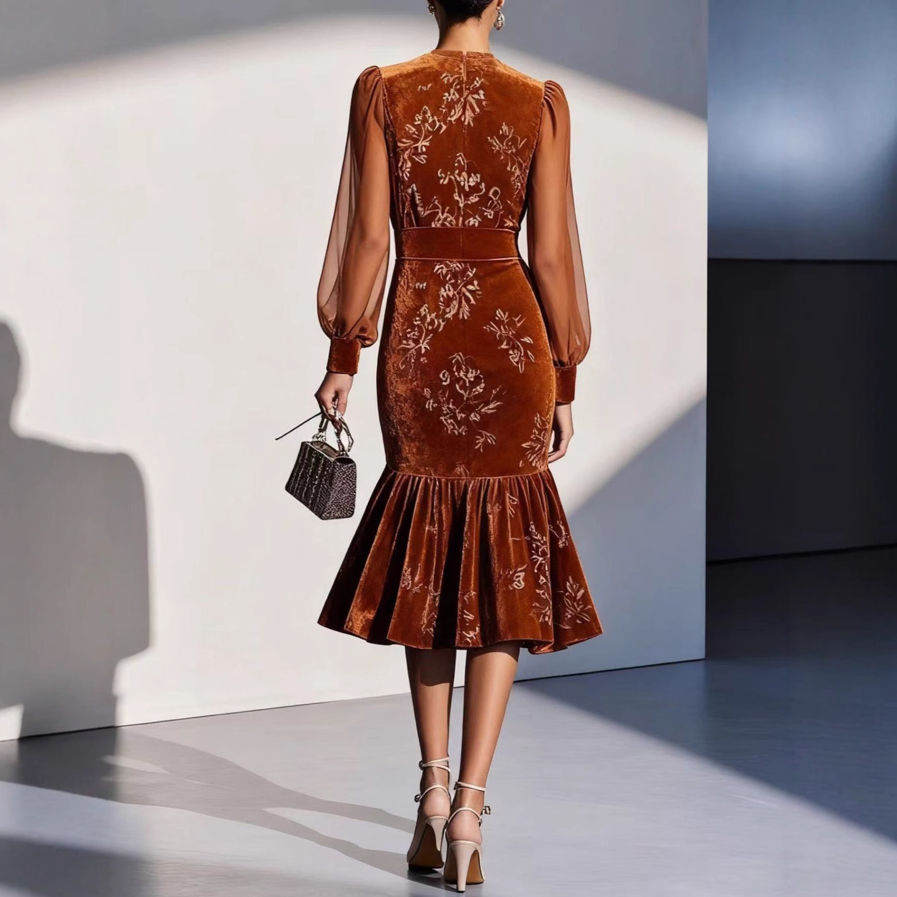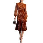 Womens Autumn Winter Caramel Velvet Mermaid Dress