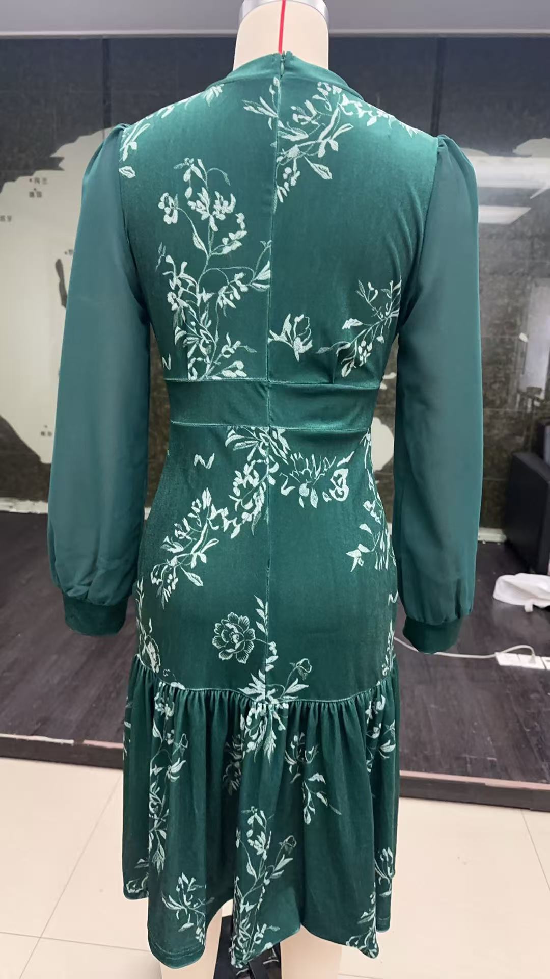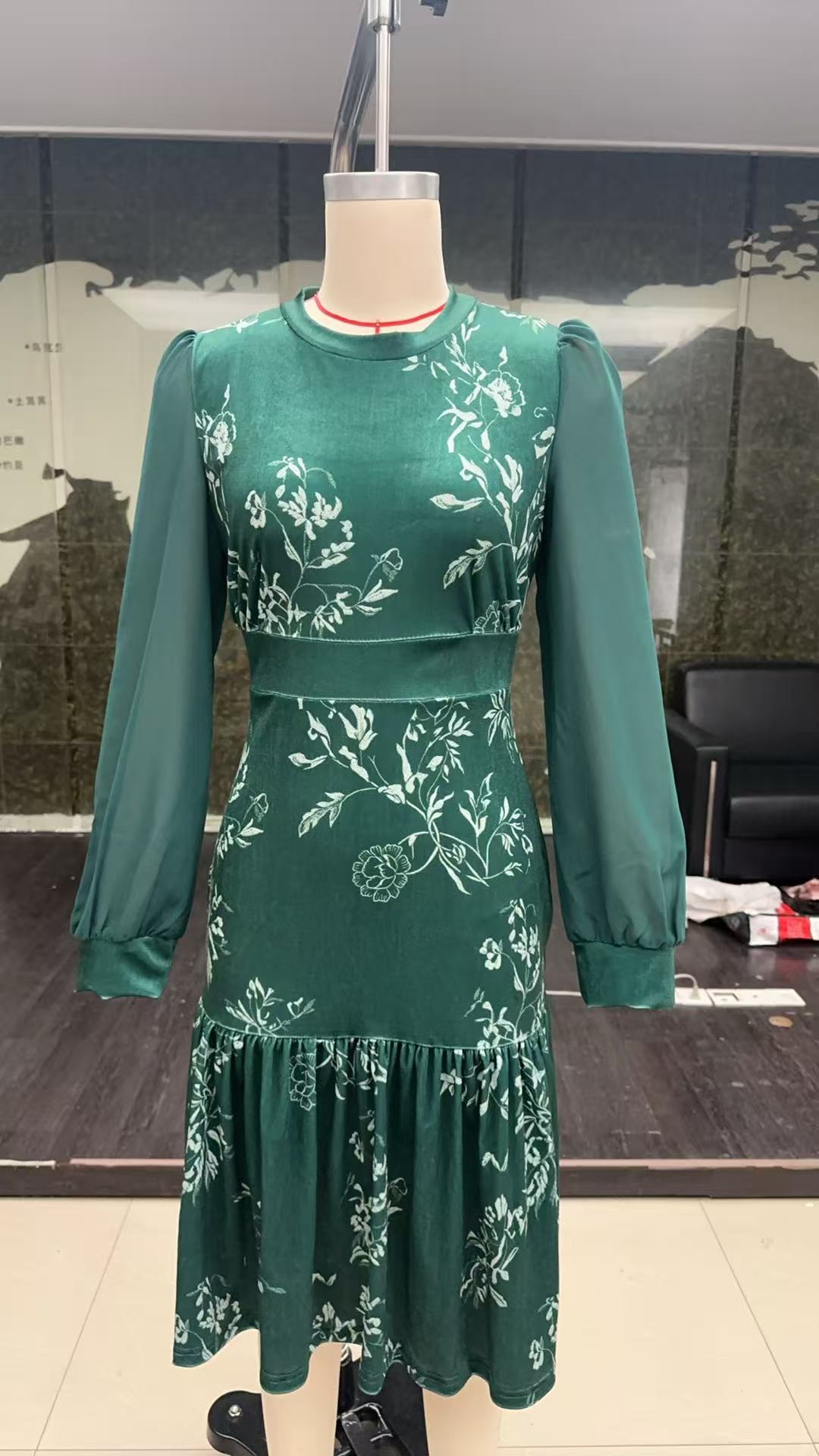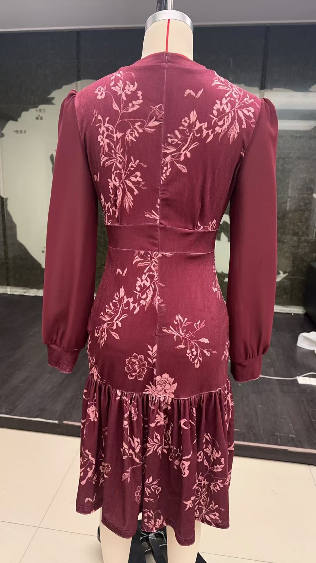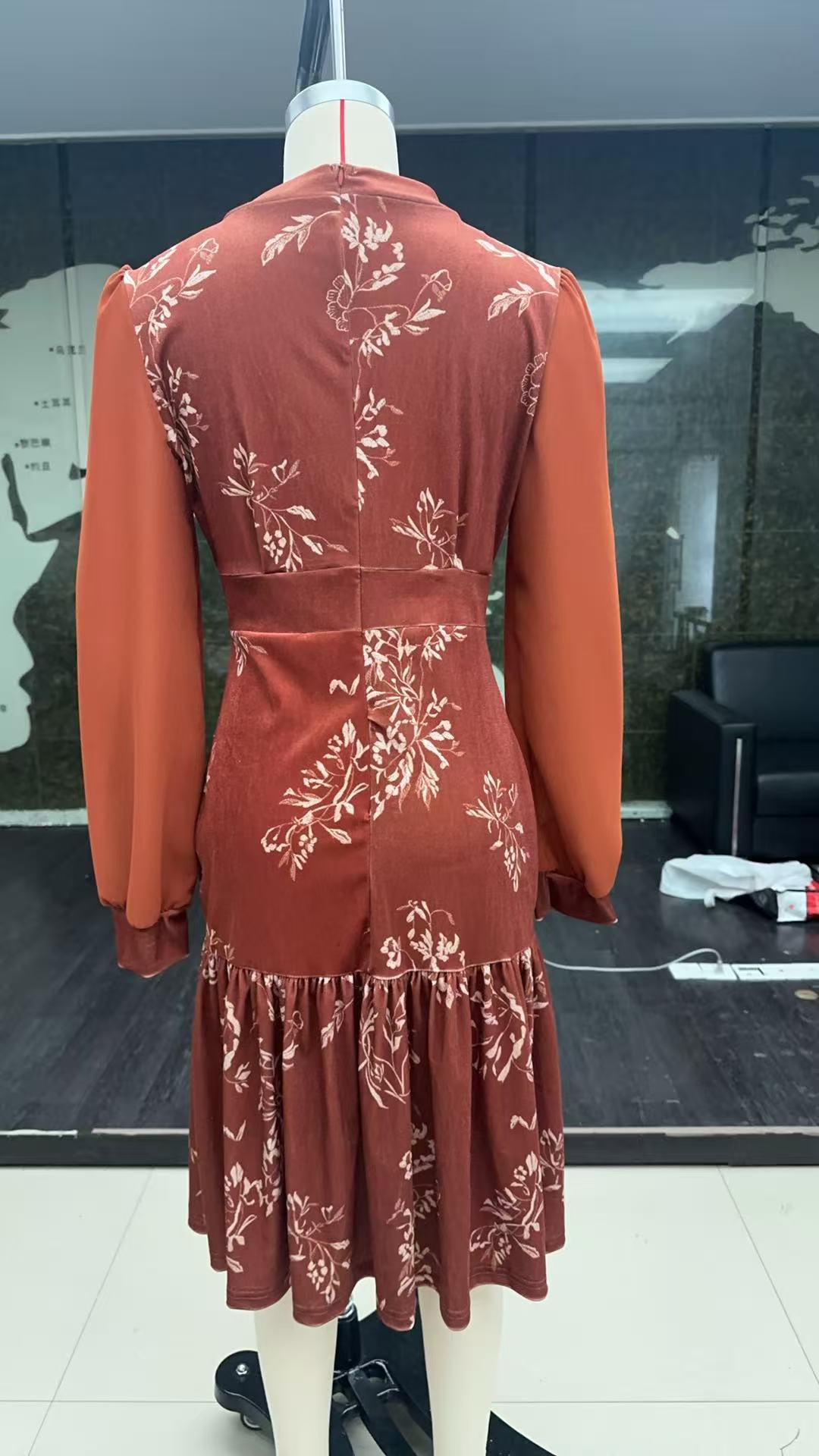 Womens Autumn Winter Caramel Velvet Mermaid Dress