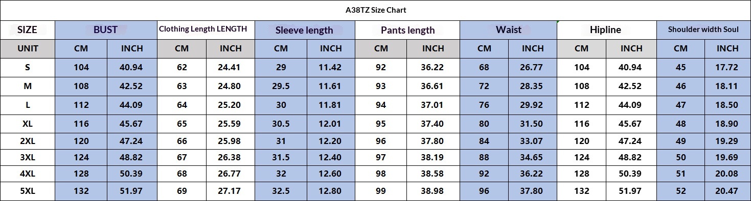 Sizes: S, M, L, XL, 2XL, 3XL, 4XL, 5XL