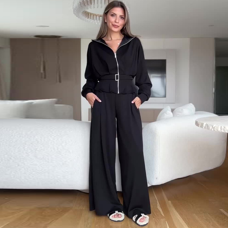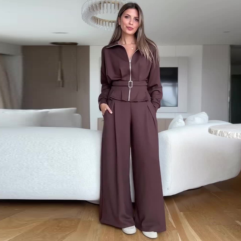 Womens Casual Elegant Two-piece Set Featuring A Long-sleeve Top And Pants