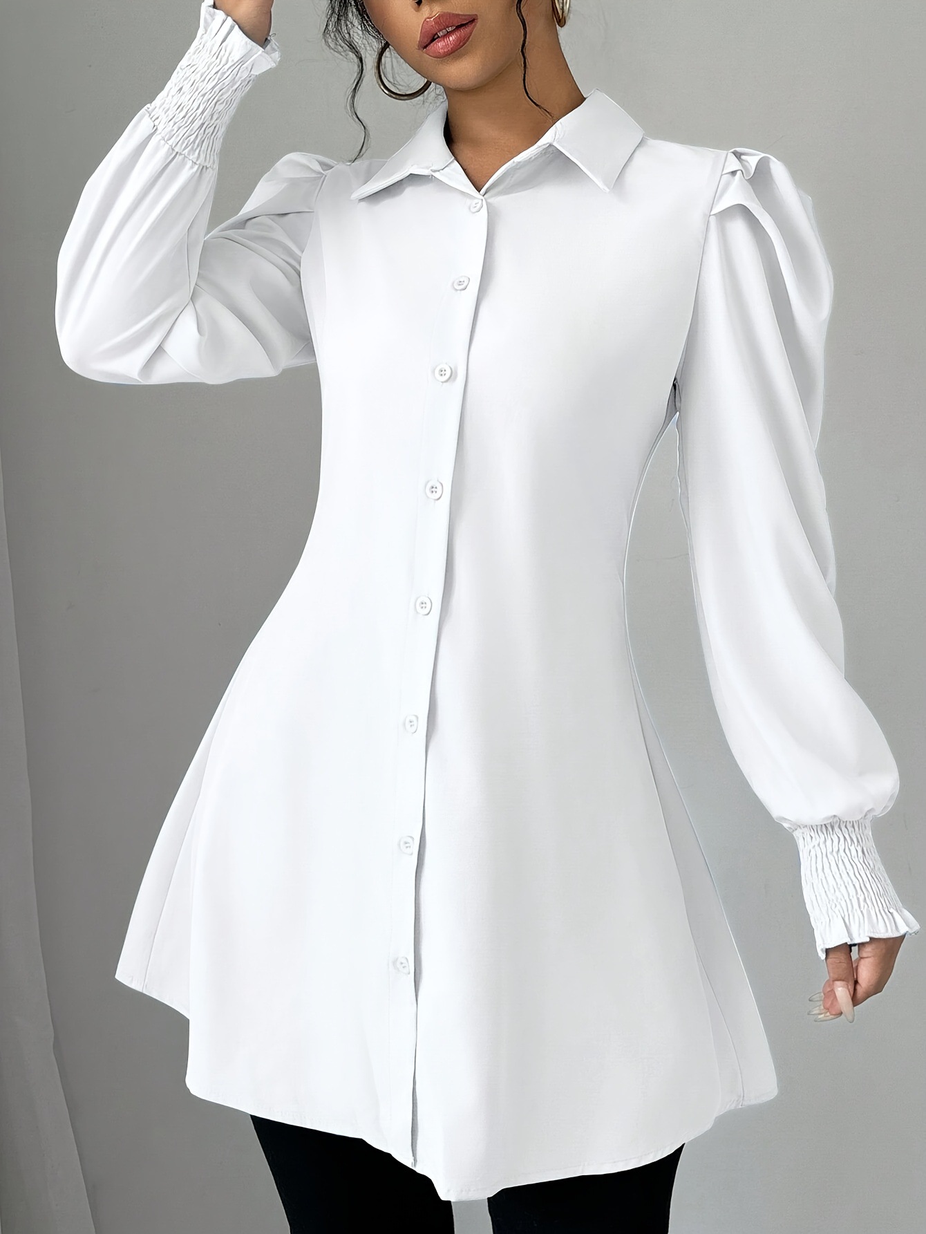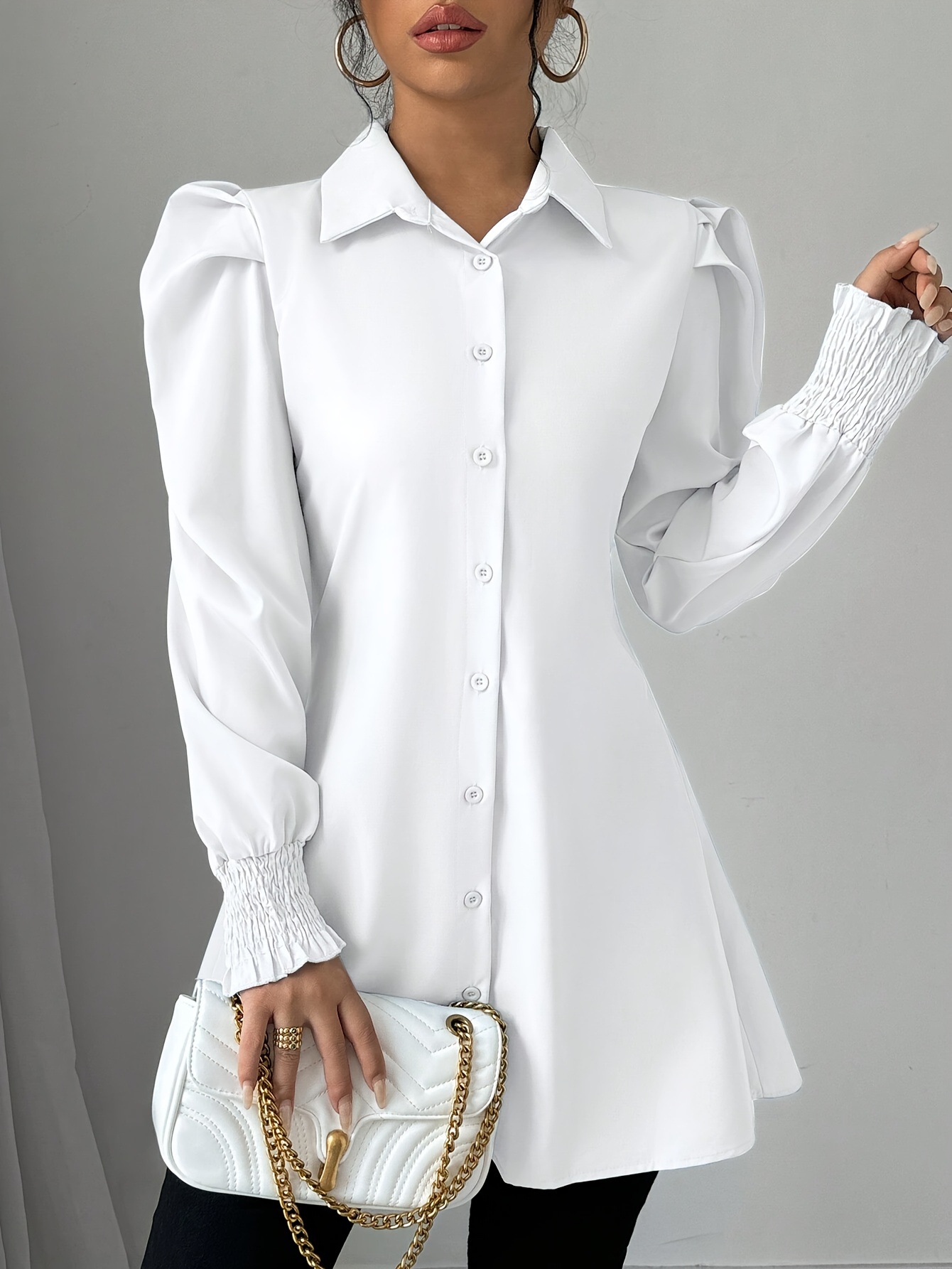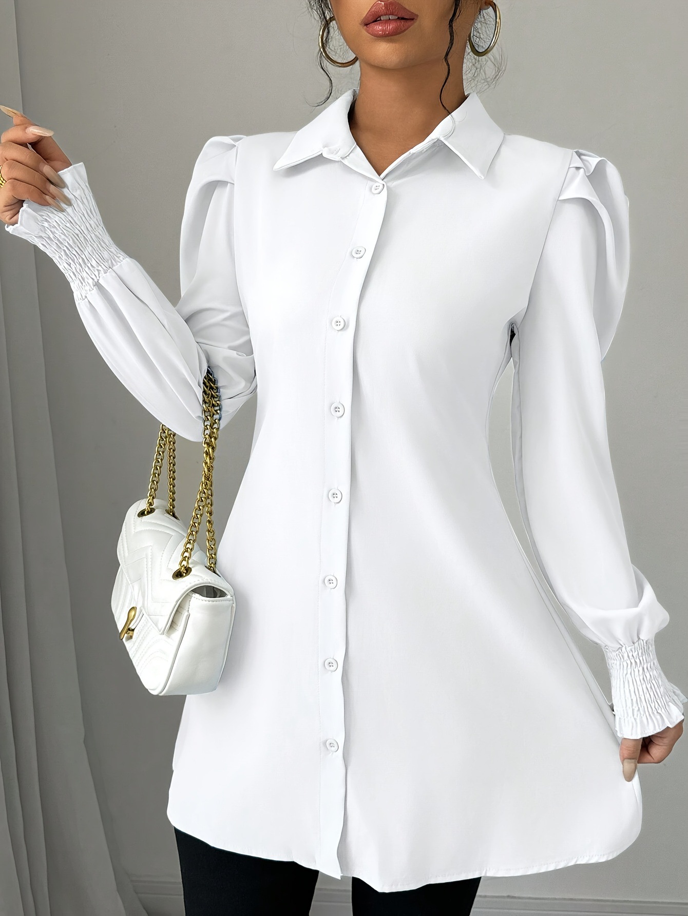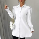 Womens Casual Solid-color Single-breasted Long-sleeve Shirt