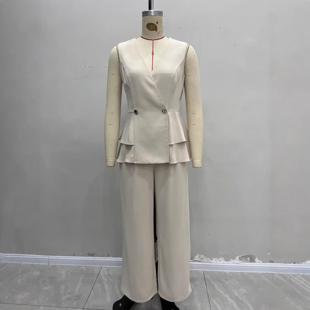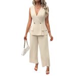 Women’s Casual Solid Color Sleeveless Top And Pants Set