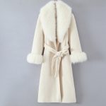 Women’s Clothing Big Fur Collar Belt White Woolen Long-cut Coat