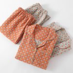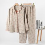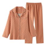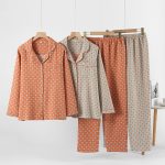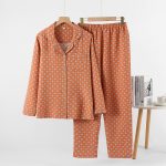 Womens Double-Layer Yarn-Dyed Cotton Long-Sleeve Top And Pants Set