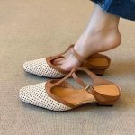 Women’s Elegant Retro Soft Bottom Square Toe Color-blocking Sandals