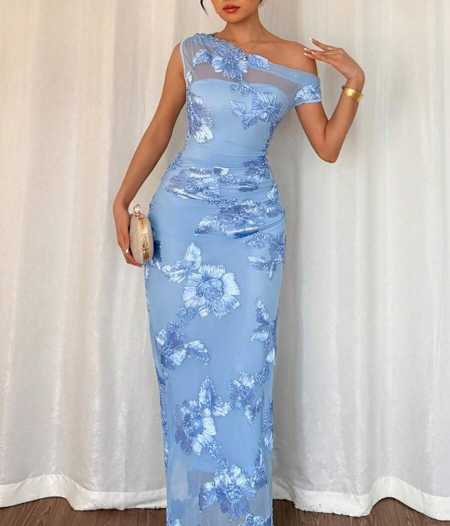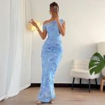 Womens Fashion Irregular-Neckline Slim-Fit Sleeveless Dress