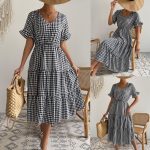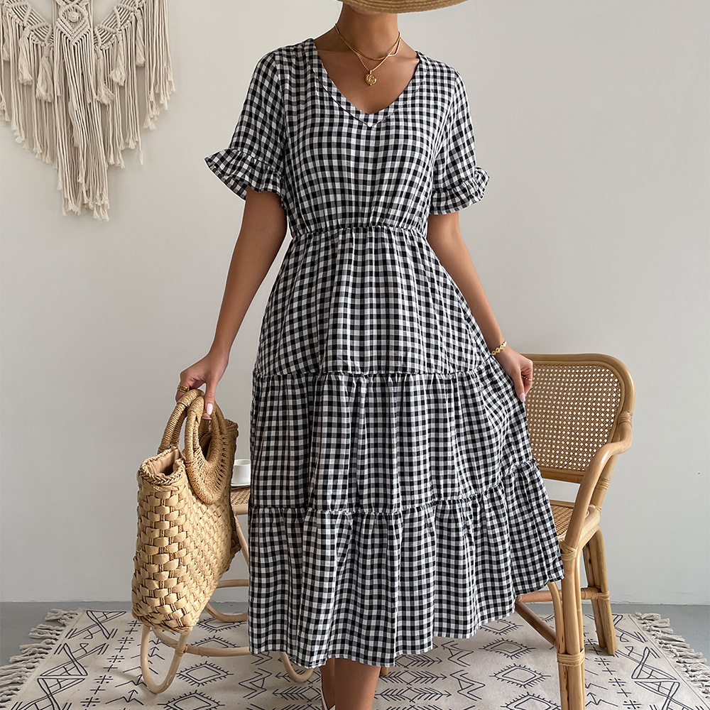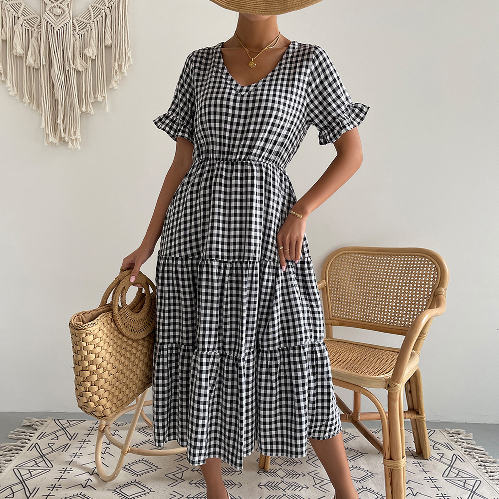 Women’s Fashion Temperament Plaid Swing Dress