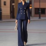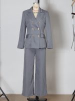 Womens Fashionable Minimalist-Line Double-Breasted Blazer Suit