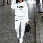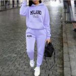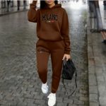 Womens Fleece-Lined Sweatshirt And Sweatpants Set With Print