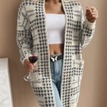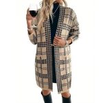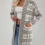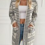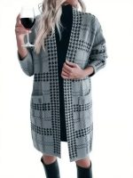 Women’s Houndstooth Knitted Long Knitted Jacket