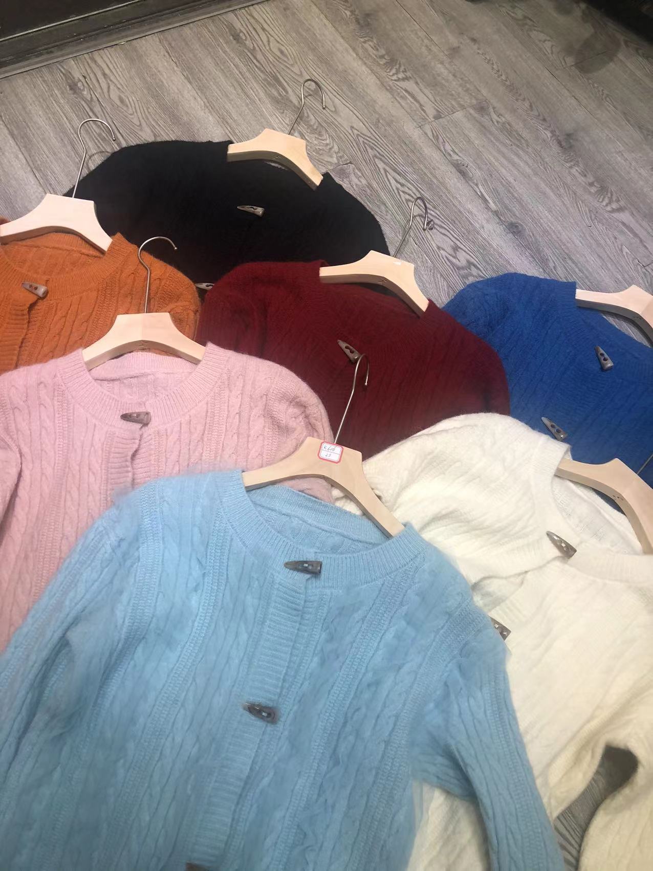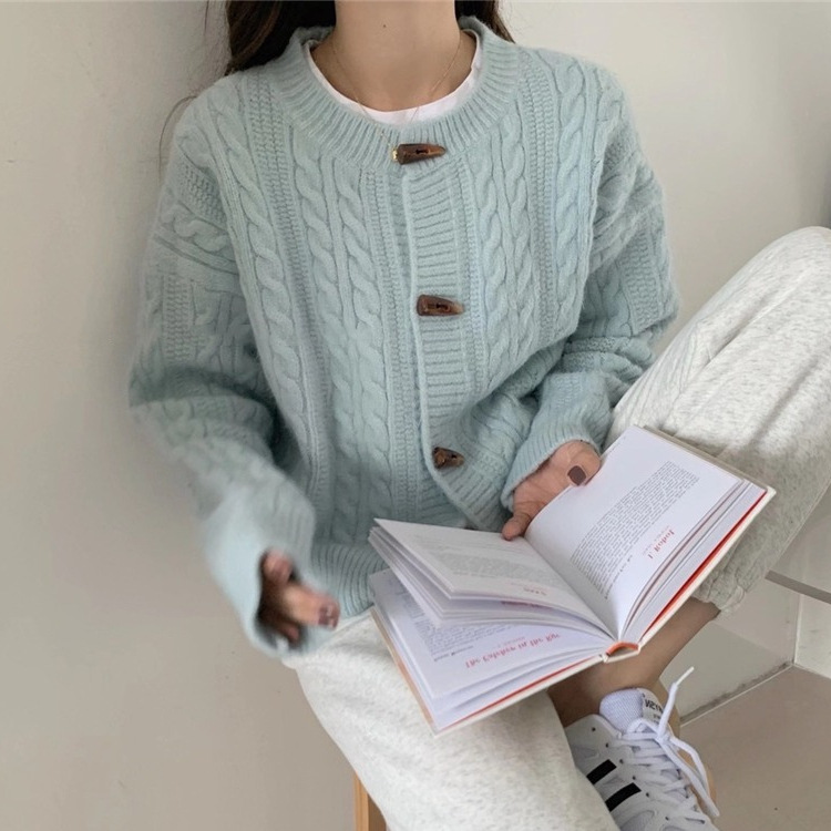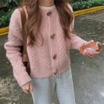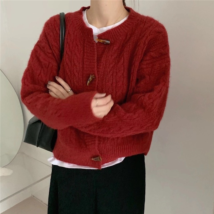 Womens Japanese-style Bell-shaped Button Short Ribbed Knit Sweater