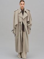 Women’s Long Khaki Belted Cape Trench Coat