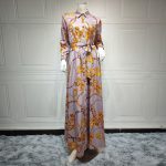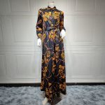 Women’s Middle Eastern Muslim Vintage Print Lace-Up Dress