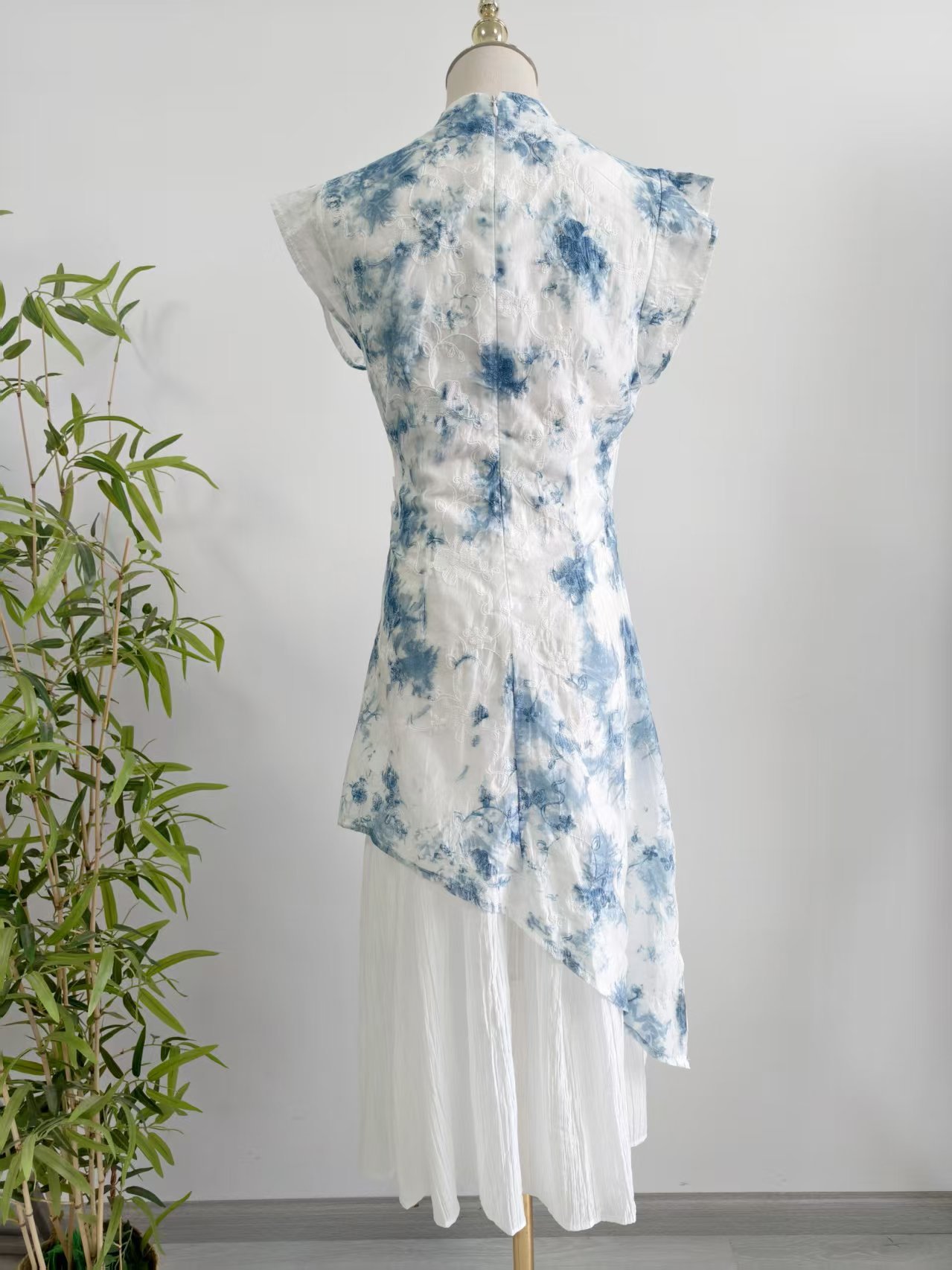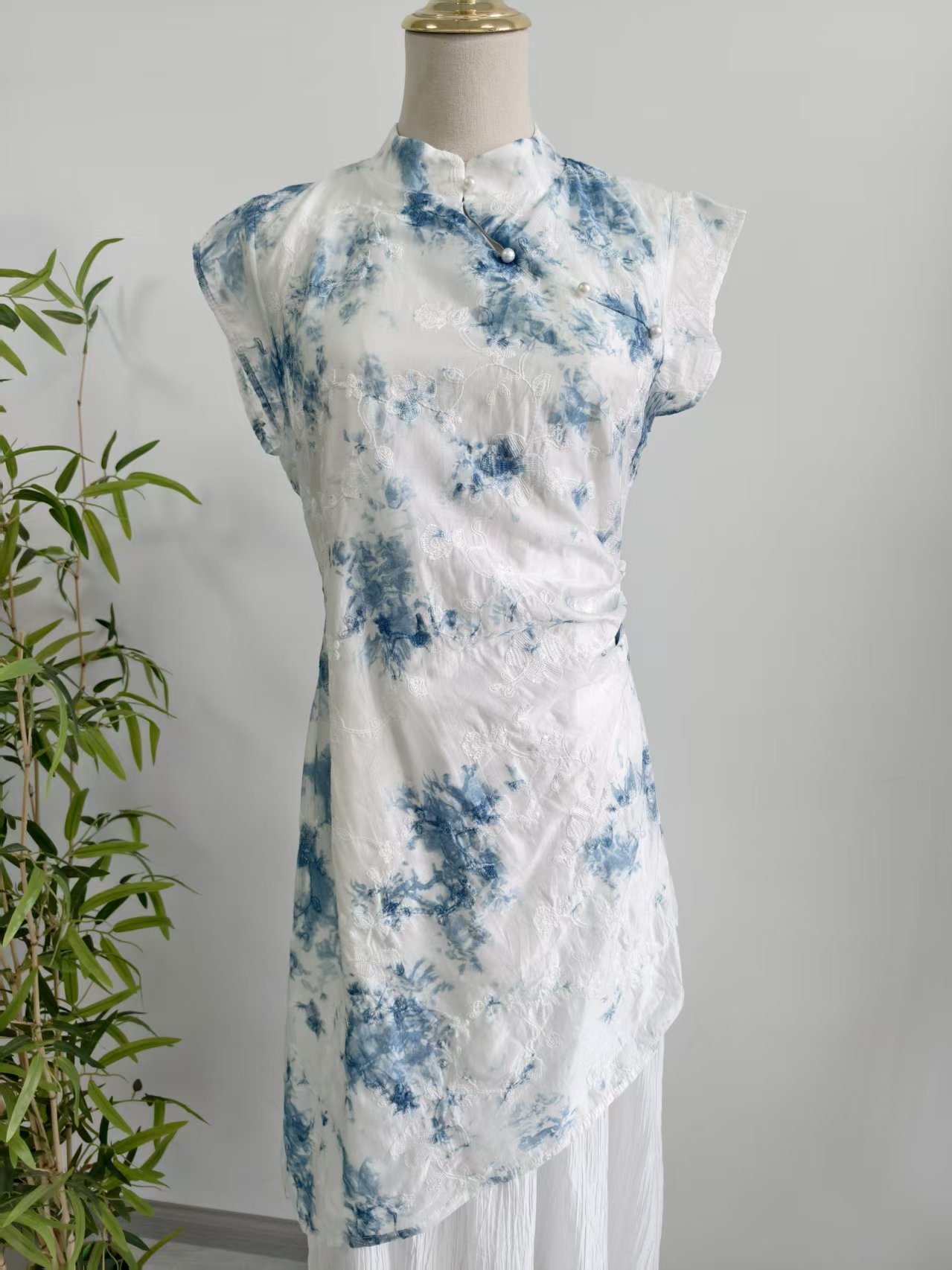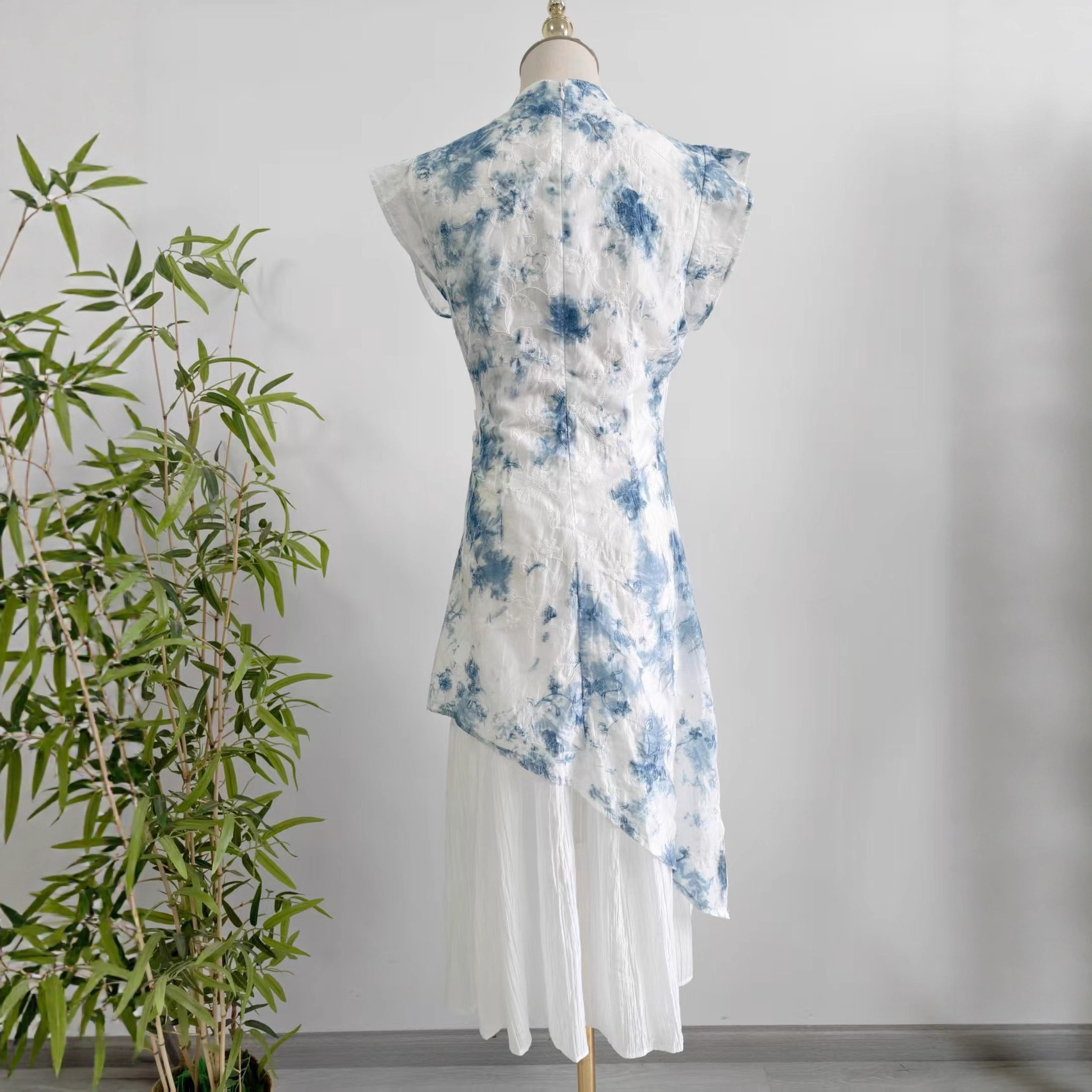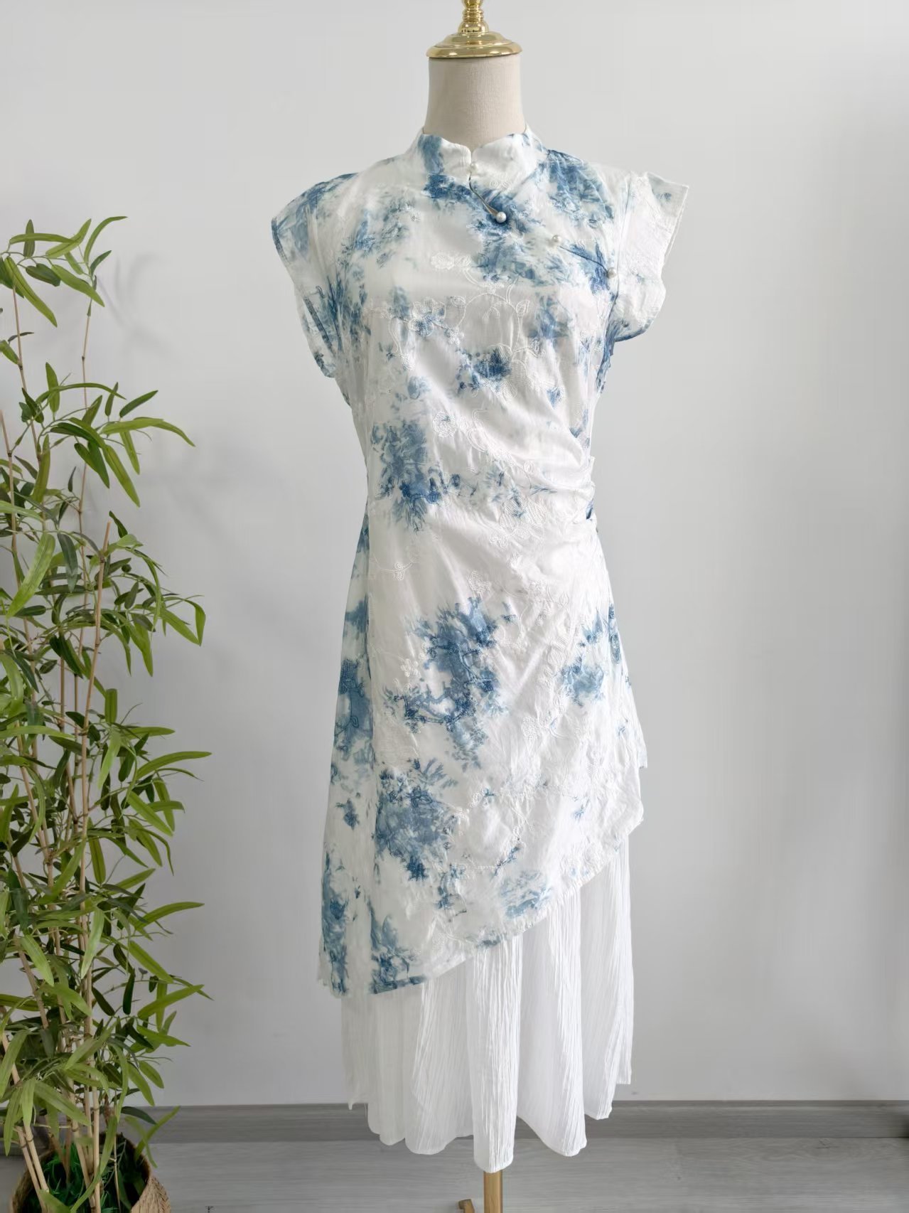 Womens New Chinese-Style Embroidered Tie-Dye Dress With A Stand Collar