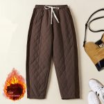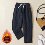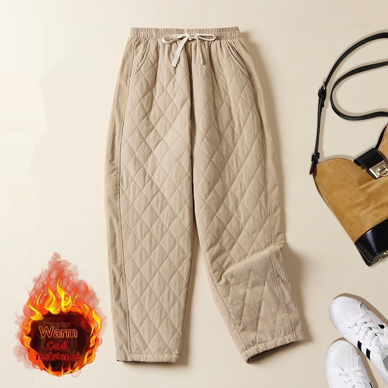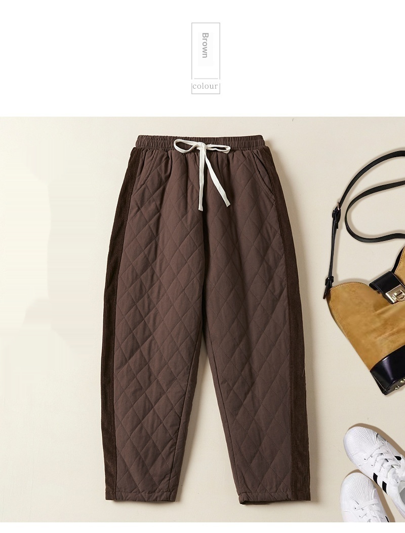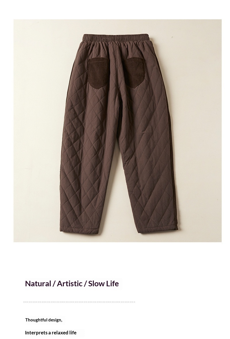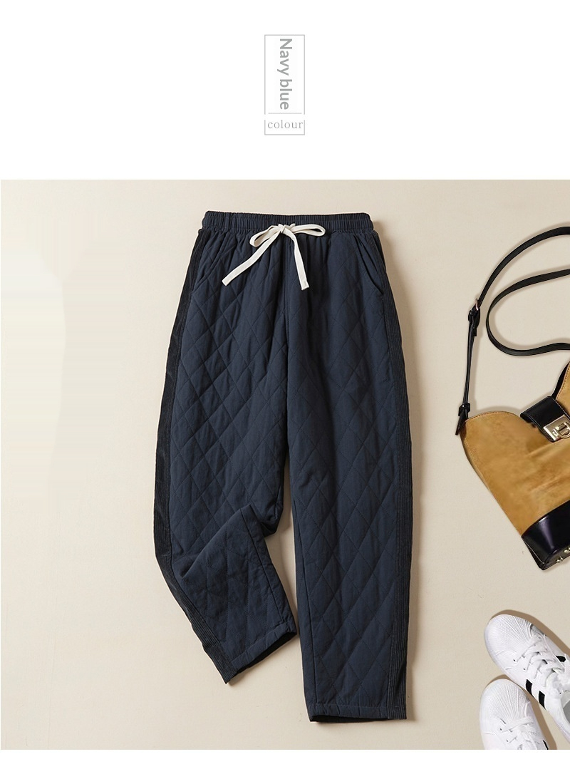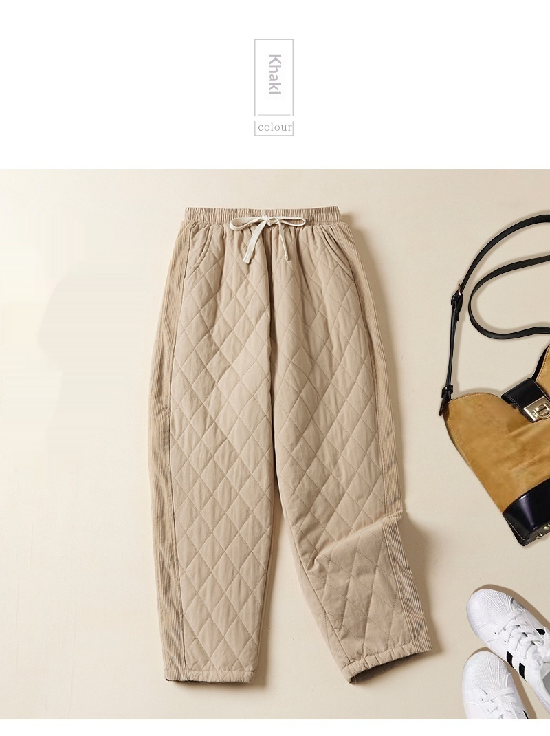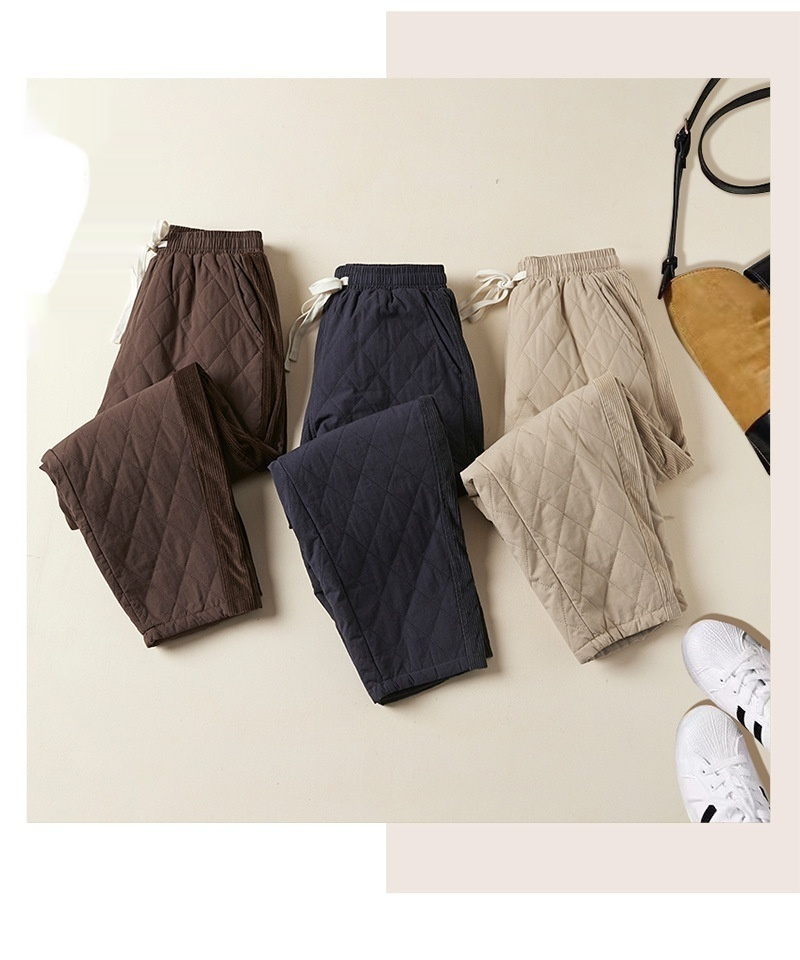 Womens Retro Diamond-Quilted Elastic-Waist Thermal Pants