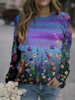 Womens Short-sleeve Printed Top With Long Sleeves