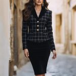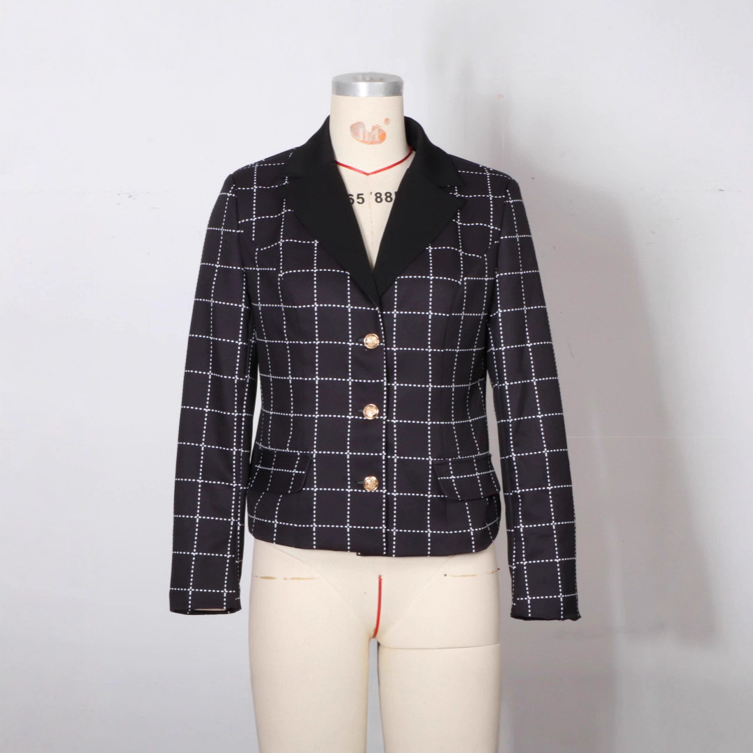 Womens Slim-Fit Casual Long-Sleeve Houndstooth Jacket