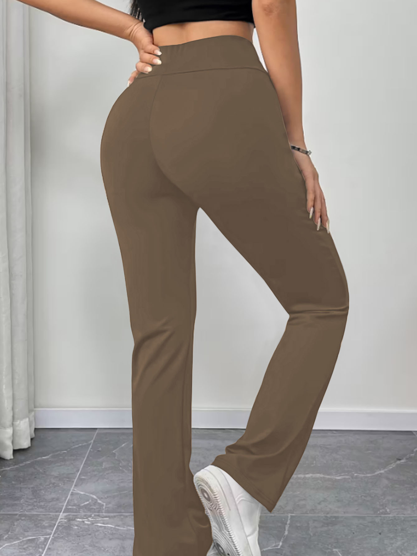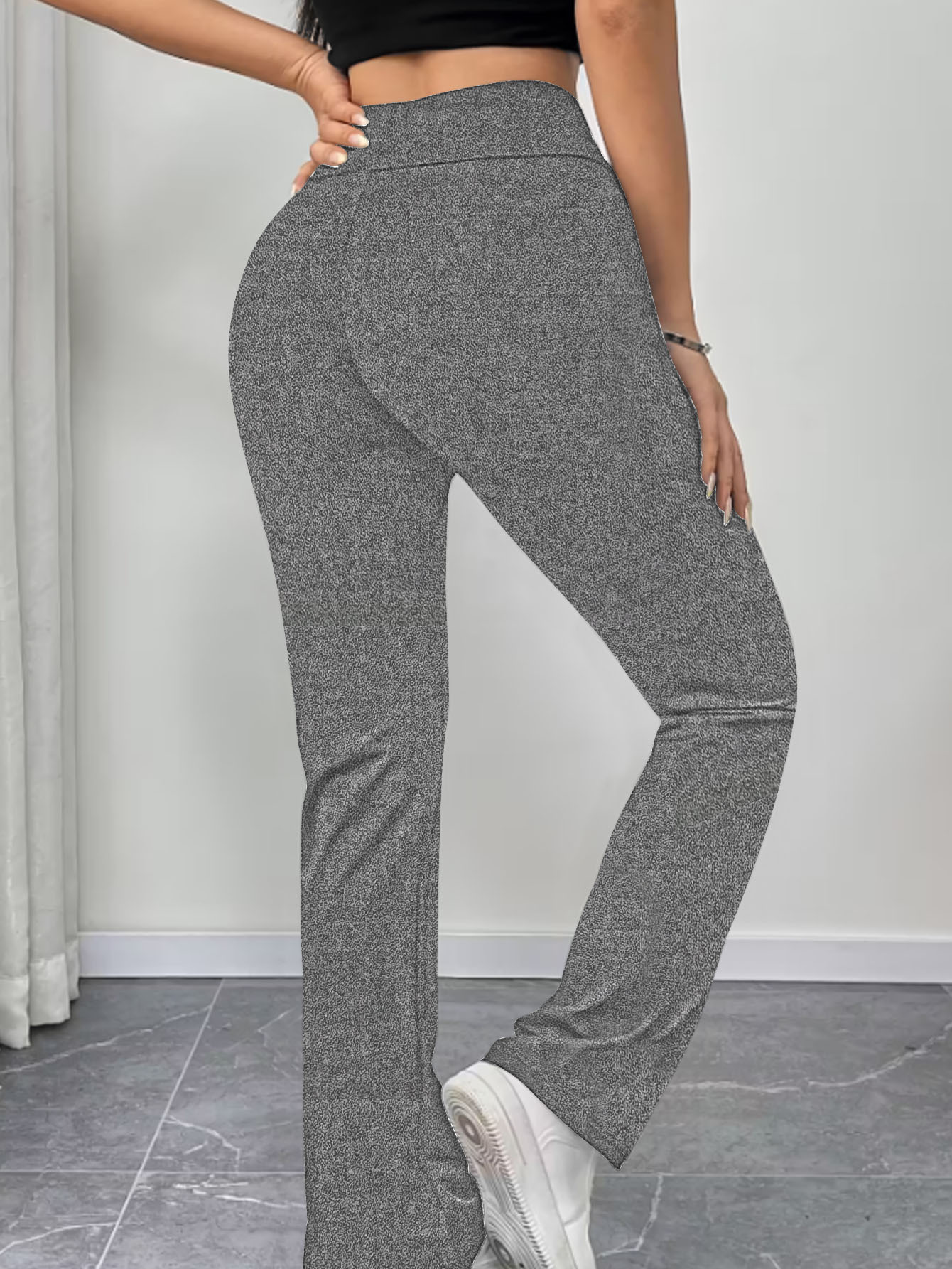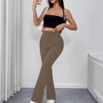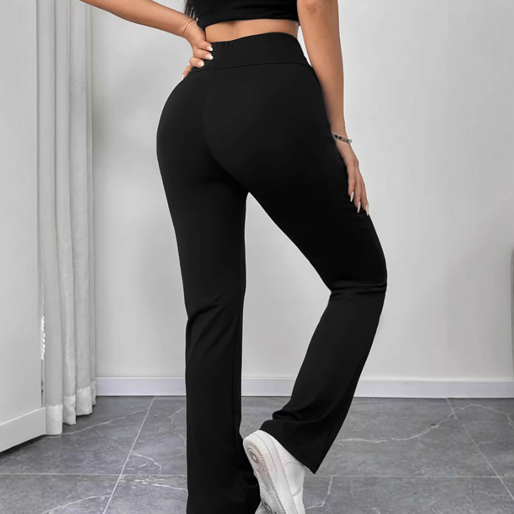 Womens Slimming Solid-Color High-Waist Flared Yoga Pants With Butt-Lifting Design